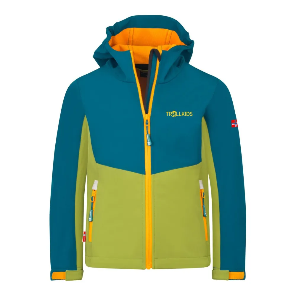 Die Kid’s Kristiansand Jacket Softshelljacke von Trollkids ist eine sportliche Outdoor-Jacke für aktive Kids! Bequem und atmungsaktiv macht die Jacke jede Bewegung mit, ohne einzuengen. Die Softshelljacke lässt sich mit einem Front-Reißverschluss bis unters Kinn verschließen und die Kapuze hält die Ohren warm, da sie den Kopf gut umschließt. Zwei Reißverschluss-Fronttaschen bewahren Energieriegel, Handy und Schlüssel sicher auf. Auf der Brust ist das Trollkids-Logo zu sehen, am linken Ärmel das Flaggen-Logo der Firma. Ob für den Spielplatz, den Schlittenausflug oder den Kletterwald, die Kid’s Kristiansand Jacket von Trollkids macht jeden Spaß mit!
