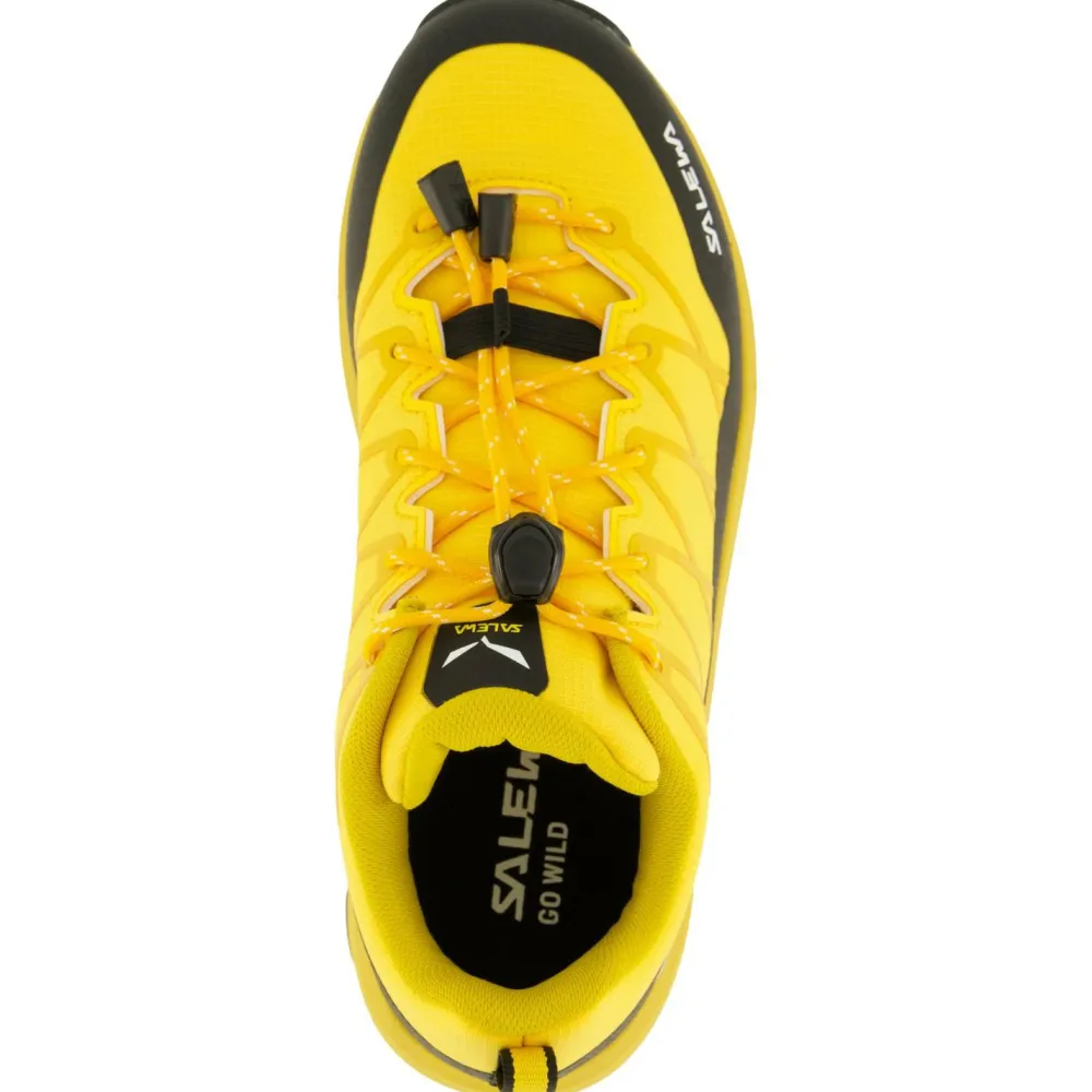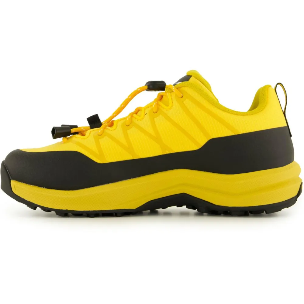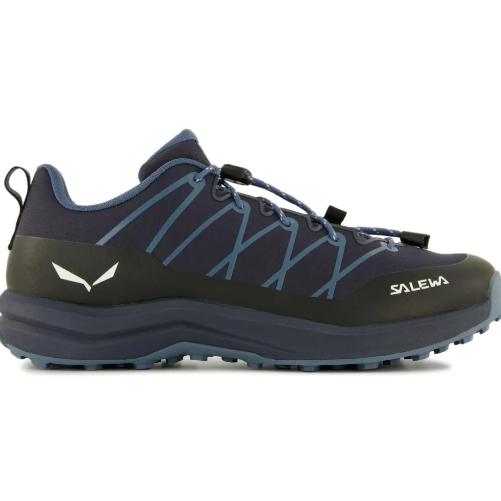 Die Zwischensohle ist aus weichem EVA-Schaumstoff konstruiert und sorgt besonders bei langen Touren für eine gezielte Entlastung der Muskulatur. Dank der präzisen Schnellschnürung sitzen die Multisportschuhe in jeder Situation bequem am Fuß und verrutschen nicht. Durch die praktischen Anziehschlaufen im Fersenbereich lassen sich die Salewa Kid’s Wildfire 2 von den Kindern bequem alleine an- und ausziehen.