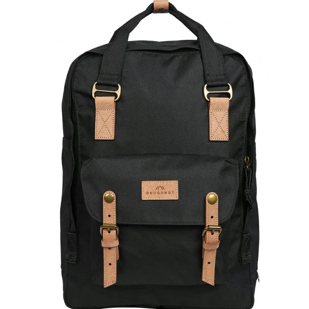 Die Lederriemen an der vorderen Tasche sind mit Druckknöpfen versehen, mit denen Du sie ganz leicht öffnen kannst. Durch den integrierten Reißverschluss lässt sich der Rucksack ganz einfach komplett öffnen. So kannst Du alles sauber und übersichtlich in Deinem Doughnut Rucksack unterbringen. Für Studierende oder Berufstätige eignet sich der Macaroon Rucksack ebenfalls wunderbar. Zu seiner Innenausstattung gehört ein gepolstertes Laptopfach, passend für Geräte bis zu 14“ Zoll und für A4 Dokumente. Des Weiteren hat er kleine Innentaschen und Fächer, die mit Reißverschluss oder Gummiband versehen sind.