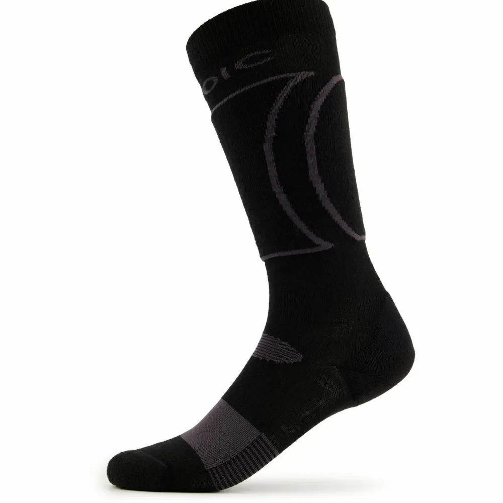 Mit den Merino Ski Socks Tech Light von Stoic bist Du bereit für lange Pistentage. Denn dank des hohen Anteils an Merinowolle bleiben die Zehen auch bei kilometerlangen Abfahrten warm. Zudem sorgt die Wolle dafür, dass keine unangenehmen Gerüche in den Skischuhen entstehen. Die Socken sind angenehm weich und an den Zehen sowie an den Fersen zusätzlich gepolstert.