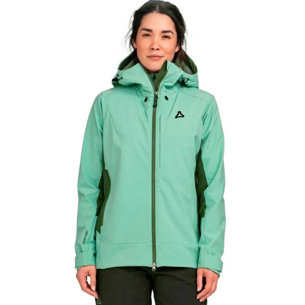 Die Women’s Softshell Jacket Milagle von Schöffel ist Dein zuverlässiger Partner bei jedem Wetter auf Deinen Wanderungen. Der durchgehende Frontreißverschluss mit Kinnschutz macht das An- und Ausziehen komfortabel und schützt gleichzeitig vor unangenehmen Scheuerstellen am Hals. Mit der verstellbaren Kapuze bist Du flexibel auf plötzliche Wetteränderungen vorbereitet, während der Kordelzug im Saum und die Klettverschlüsse an den Ärmeln eine perfekte Anpassung ermöglichen.