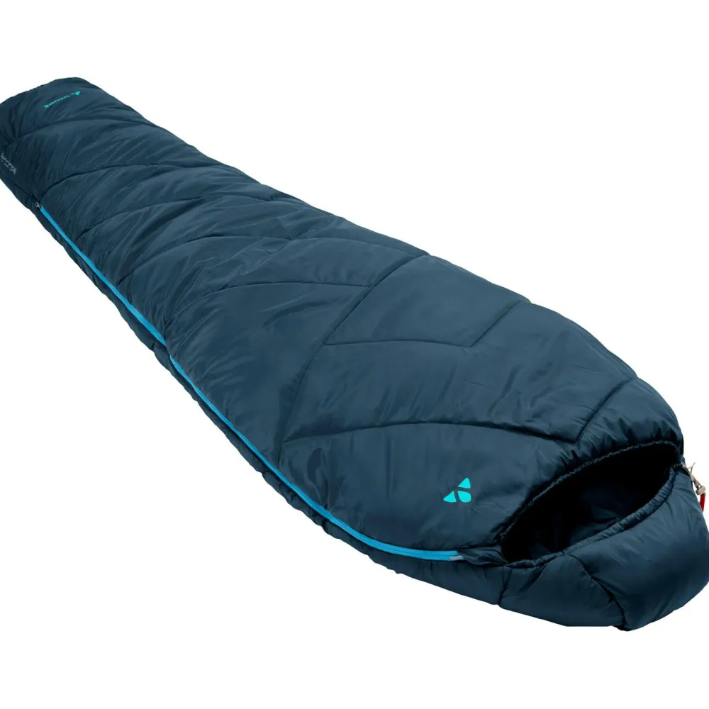 Der Sioux 800 XL II SYN Kunstfaserschlafsack von Vaude ist als 3-Season Schlafsack konzipiert und eignet sich für Temperaturen von ca. +2°C hervorragend. In der verlängerten Ausführung „XL“ ist er dabei bestens für größere Personen mit einer maximalen Körpergröße von 205 cm geeignet.. Der Mumienschlafsack ist mit 800 g isolierendem Sensofiber Füllmaterial ausgestattet und 85 cm breit an den Schultern. Ob Vanlife, Hüttentour oder Camping mit Zelt – der funktionelle Mumienschlafsack ist stets mit von der Partie.