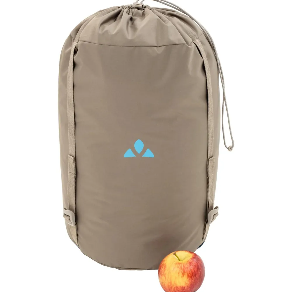 Vaude stattet den Sioux 800 XL II SYN mit Wärmekragen und Konturkapuze. Der seitliche Reißverschluss reicht komplett bis zum Fußsack und lässt sich einfach und bequem öffnen. Zusätzlich ergänzt eine praktische Innentasche für wichtige Accessoires den Kunstfaserschlafsack.Der leichte Schlafsack trocknet zügig und ist ausgesprochen pflegeleicht. Für den platzsparenden Transport liefert Vaude einen Packsack mit Kompressionsriemen gleich dazu.