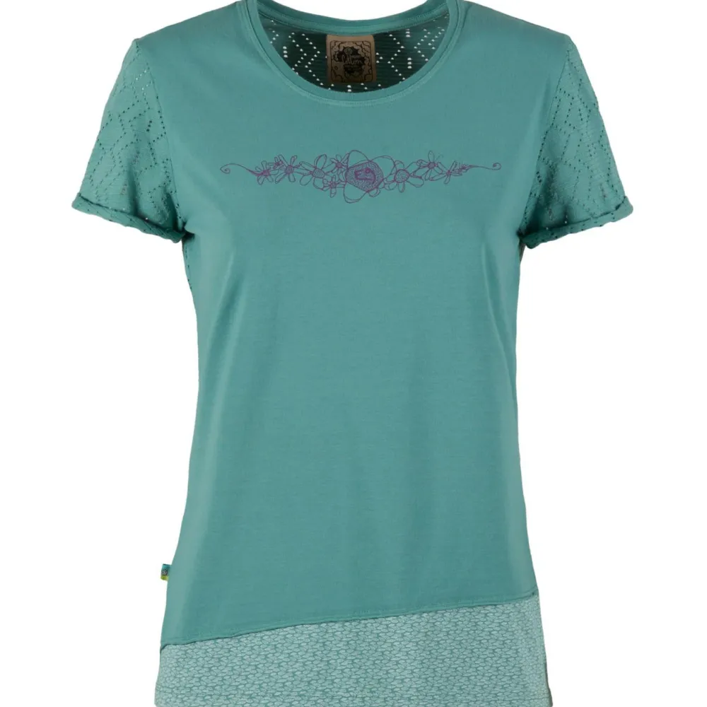 Das E9 Women’s Bonny T-Shirt besticht durch seinen modernen Rundhalsausschnitt und den auffälligen Logoprint, die dem Shirt einen frischen und modischen Look verleihen. Ob beim Bouldern oder in der Freizeit, dieses Design sorgt dafür, dass Du immer stilvoll unterwegs bist. Es ist die perfekte Wahl für alle, die Wert auf modische Details legen und gleichzeitig ein funktionales Kleidungsstück suchen.