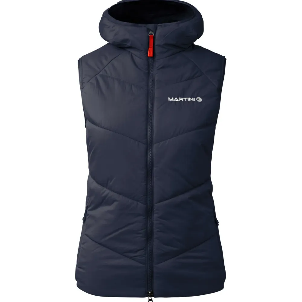 Sportliche und sehr komfortable Winterbegleiterin: die Women’s Desire Padded Vest Primaloft von Martini! Diese Kunstfaserweste besteht aus recyceltem Nylon-Oberstoff mit wasserabweisender DWR-Imprägnierung, bauschkräftiger Primaloft-Füllung und anschmiegsamen Nylon-Innenfutter. Dieser intelligente Gewebemix sorgt für umfassenden Schutz vor Wind und Wetter bei guter Atmungsaktivität, schnellem Feuchtigkeitstransport und rascher Trocknung.