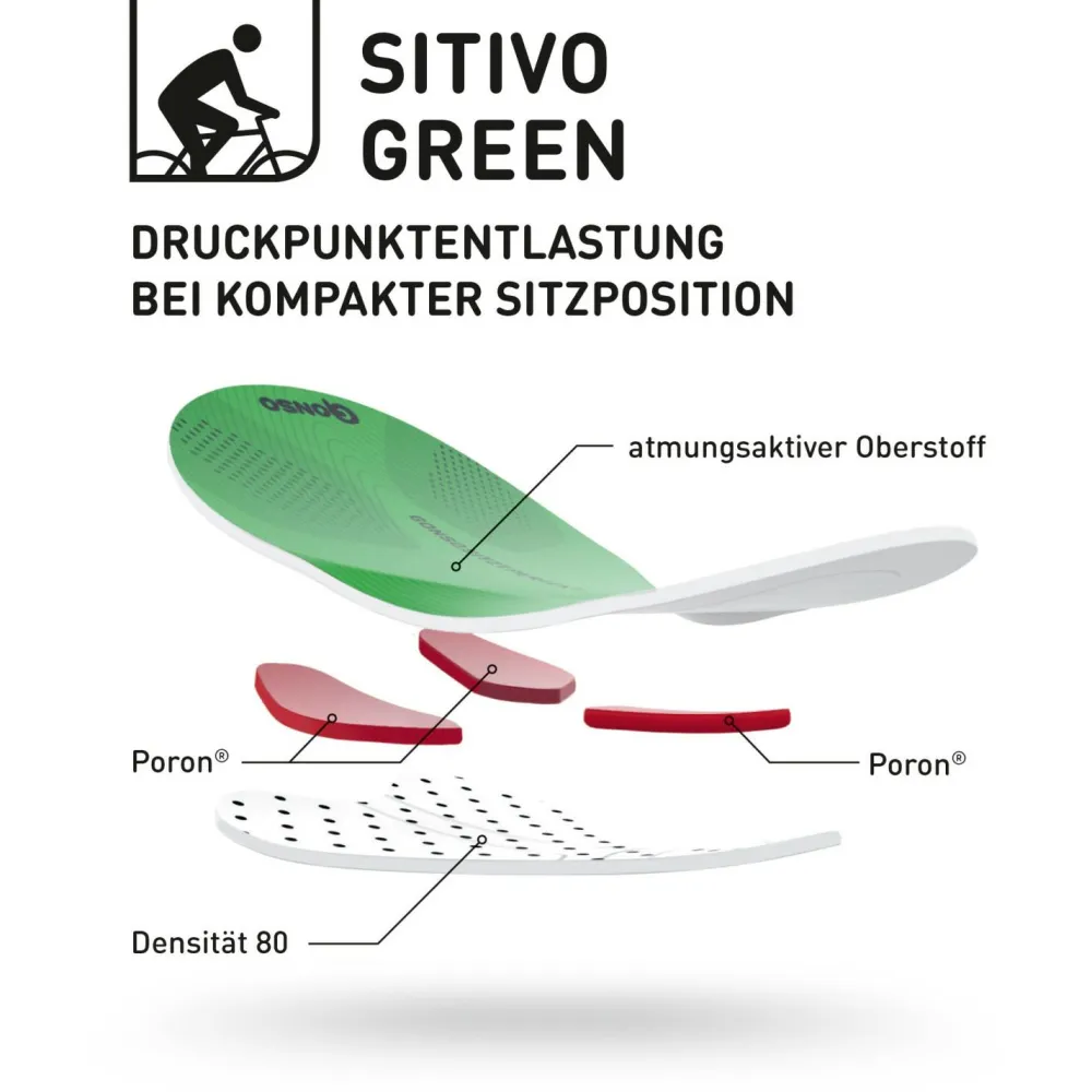 Bei der Women’s Sitivo Green-Radunterhose haben die schwäbischen Bike-Bekleidungsspezialisten von Gonso das Konzept verfolgt, die ideale Radhose für jeden Einsatz zu kreieren. Dabei wurde besonderes Augenmerk auf das Sitzpolster gelegt, das in drei verschiedenen Versionen, je nach Sitzposition und Körperhaltung der Bikerin, verfügbar ist. Die Druckpunktbelastung ist nämlich bei aufrechter, kompakter oder sportlicher Sitzposition immer eine andere, und dem tragen die verschiedenen Varianten der Women’s Sitivo Rechnung.Die vorliegende Green-Version ist für Fahrerinnen, die eine kompakte Position bevorzugen, und kommt mit gleichmäßig verteilter, 16mm hoher Polsterung in einem mittleren Schäumungsgrad. Speziell platzierte Poron-Elemente absorbieren Stöße im Bereich der Gesäßknochen und des Schambeins.Weitere funktionale Vorteile sind das atmungsaktive, schnelltrocknende Gewebe, sowie die rutschsicheren Beinabschlüsse, die einen guten Halt der Radhose sicherstellen.