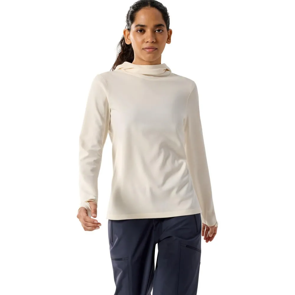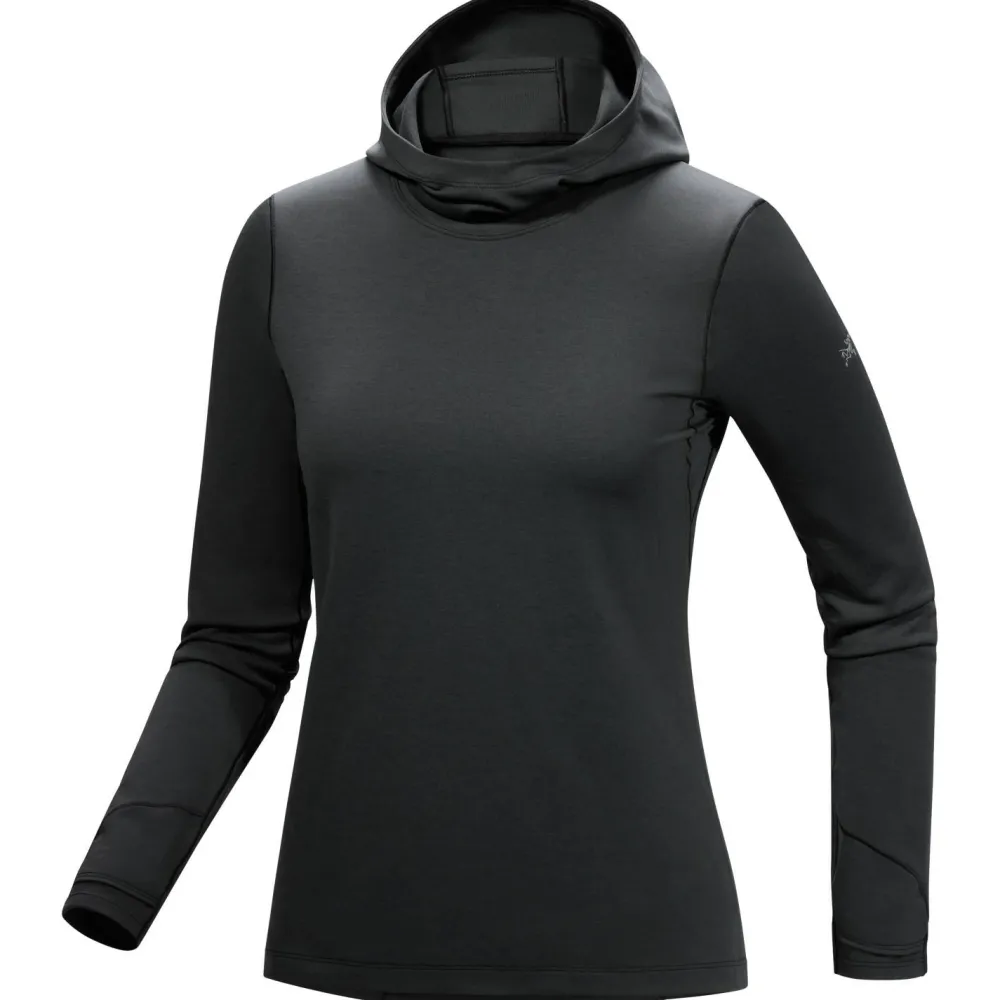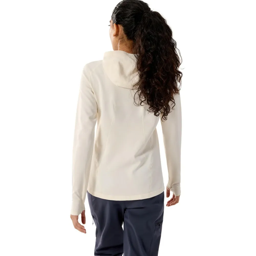 Mit dem Women’s Taema Thermal Hoody von Arc’teryx genießt Du durchdachten Komfort bei jeder Bewegung. Die enganliegende Kapuze schützt Dich zuverlässig vor Wind und Kälte, ohne Deine Sicht einzuschränken. Besonders clever: Das Loch für den Pferdeschwanz sorgt dafür, dass lange Haare bequem unter der Kapuze Platz finden. Daumenschlaufen halten die Ärmel an Ort und Stelle und bieten extra Schutz für Deine Hände, während die Rückenlänge von etwa 64 Zentimetern optimalen Sitz garantiert – auch wenn es mal dynamischer zugeht.