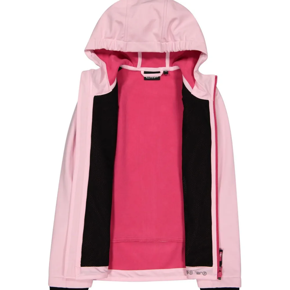 Mit ihrer funktionellen Materialmischung mit Polyester und Elasthan bietet die Girl’s Jacket Fix Hood Softshell Softshelljacke von CMP hervorragende Bewegungsfreiheit bei sportlichen Outdooraktivitäten. Ob Wandern, Trekking, Bergsteigen oder Radfahren – die stretchy Softshelljacke macht jede Bewegung mit. Dabei bietet sie hervorragenden Wetterschutz mit dem integrierten Clima Protect Laminat und widersteht souverän einer 7000 mm Wassersäule.