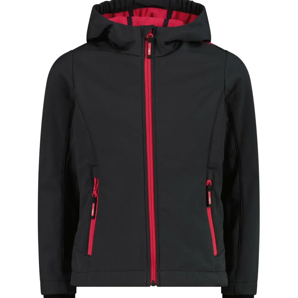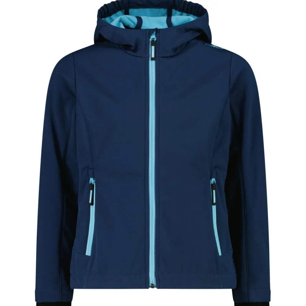 Dank hohem Kragen und Kapuze sind auch Kopf und Hals dabei bestens vor Wind, Kälte und Regen geschützt. Die wetterfeste CMP Jacke ist mit Klettverschlüssen an den Ärmelenden ausgestattet und lässt sich per Kordelzug auch am Jackensaum verstellen. Für die Hände oder wichtige Accessoires stehen zwei praktische Fronttaschen mit Reißverschluss in der Girl’s Jacket Fix Hood Softshell Softshelljacke bereit.