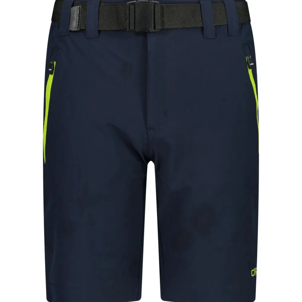 Die Kid’s Bermuda with Belt von CMP eignet sich hervorragend für Ausflüge in die Natur und die Berge an warmen Tagen. Mit ihr haben kleine Abenteurer noch mehr Spaß an Trekking- und Wandertouren. Der moderne und sportliche Design fällt schon von Weitem ins Auge und kann vielseitig kombiniert werden. Dank des integrierten Gürtels kann die Hose individuell angepasst werden und verrutscht nicht. Die beiden Seitentaschen mit Reißverschluss bieten ausreichend Platz, um wichtige Kleinigkeiten sicher und schnell zu verstauen. Dank der Materialzusammensetzung ist die Hose stretchy und bietet damit ein hohes Maß an Bewegungsfreiheit.