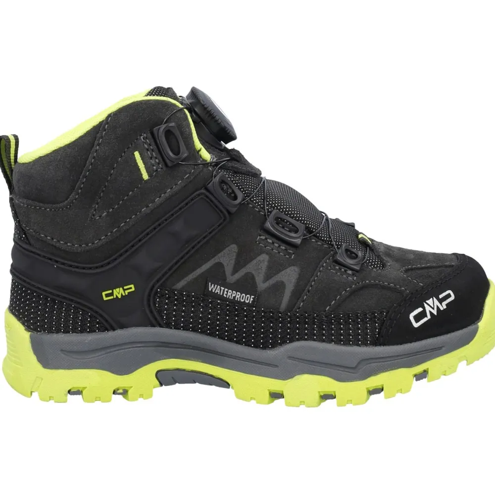 Mit den Kid’s Kiruna Mid Fitgo Trekking Shoes WP von CMP sind junge Wanderer bestens für den Trail gerüstet! Die mittelhohen Trekkingschuhe besitzen ein strapazierfähiges Obermaterial aus Veloursleder und Synthetik, das zusätzlich mit einer PFC-freien DWR-Imprägnierung behandelt ist. Die atmungsaktive ClimaProtect Membran macht die Schuhe wasserdicht und sorgt darüber hinaus für ein gutes Feuchtigkeitsmanagement.