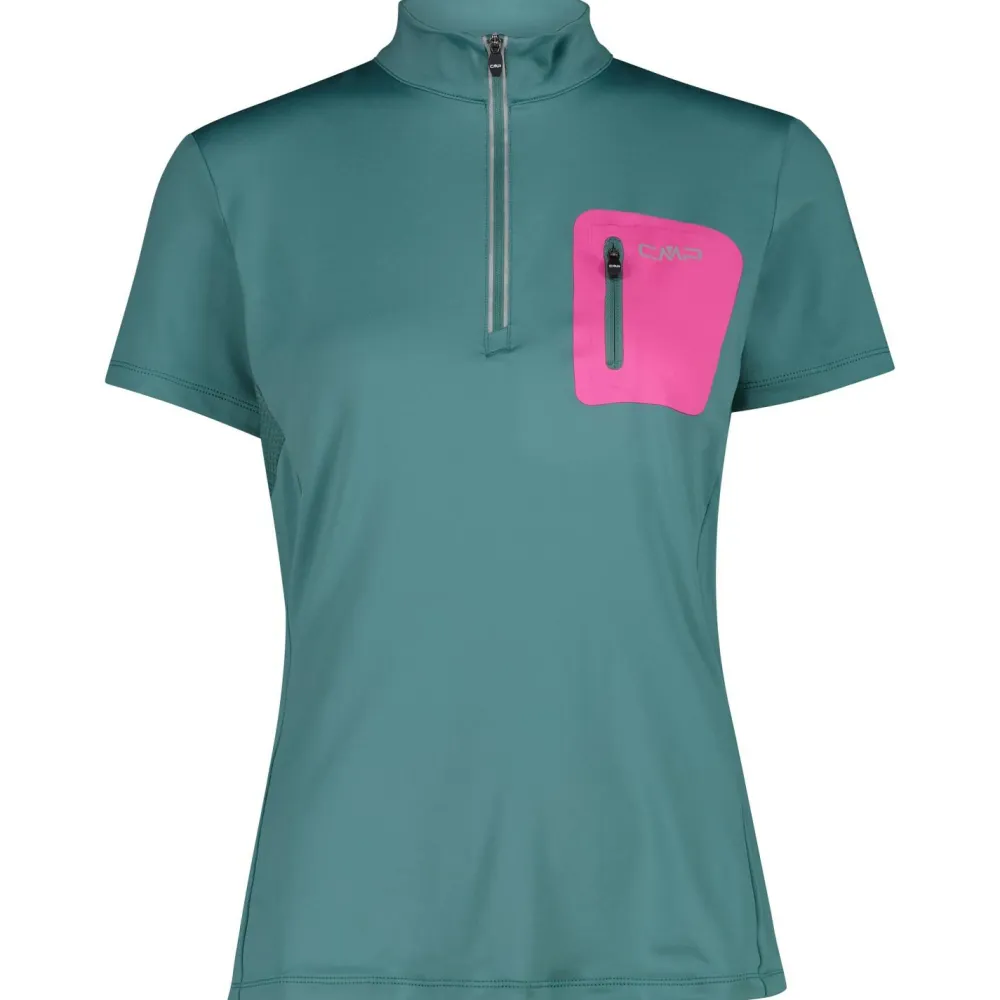 Mit einem dezenten Design und einer guten Passform überzeugt das Women’s Breast Pocket T-Shirt Free Bike von CMP. Dieses Radtrikot ist fürs Mountainbiken oder auch für Radreisen bestens geeignet. Das Material ist dabei atmungsaktiv und schnelltrocknend und sorgt so dafür, dass Feuchtigkeit schnell an die Umgebungsluft abgegeben wird. Das Trikot hat lediglich eine kleine Tasche am Rücken und eine Brusttasche mit Reißverschluss. Hierdurch ist das Tragen eines Rucksacks kein Problem.
