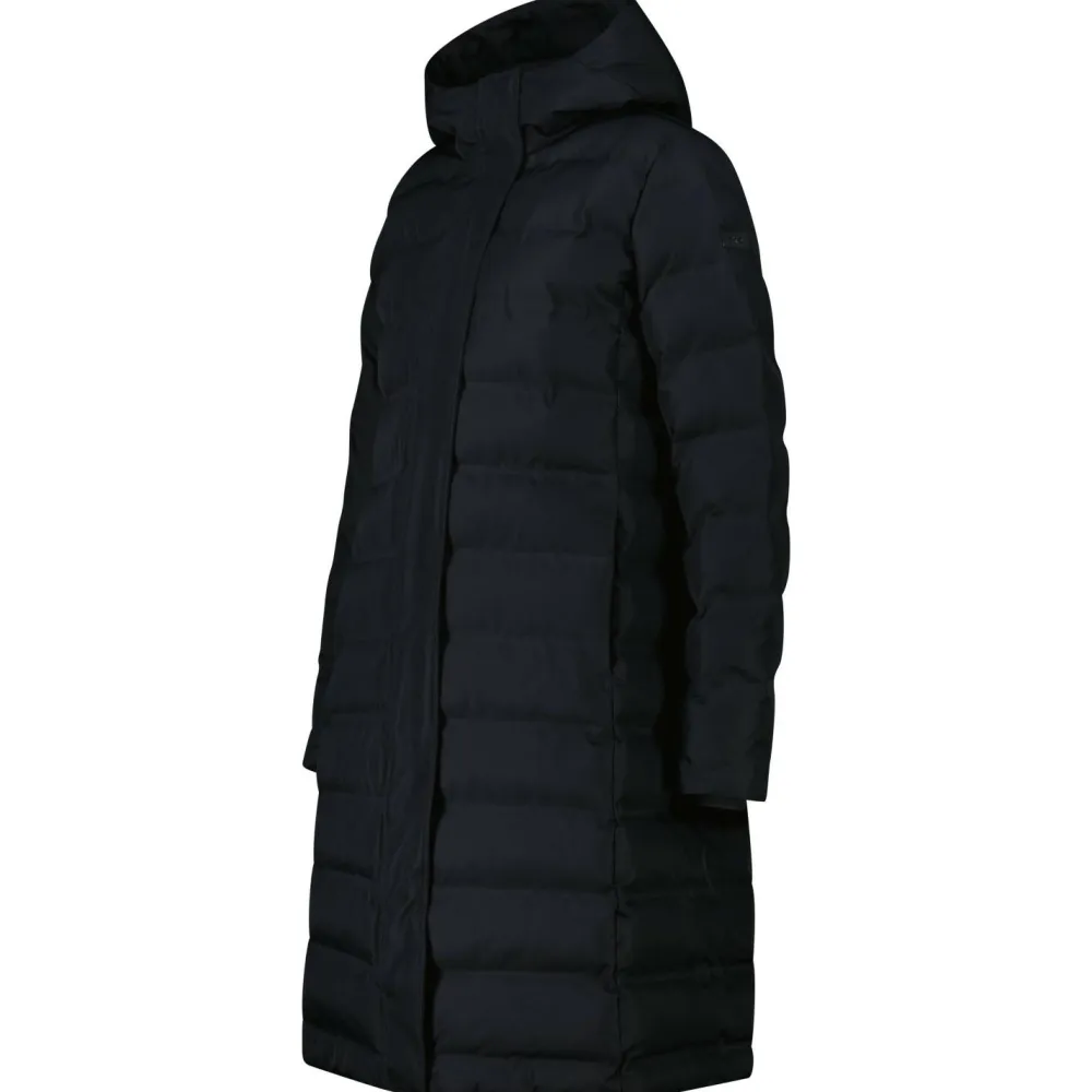 Mit dem Women’s Down Coat Fix Hood Mantel von CMP kannst Du den ganzen Tag beim Wandern, Schlittenfahren oder Skifahren im Schnee verbringen und er wird dennoch keine Feuchtigkeit eindringen lassen. Mit seiner Wassersäule von 10 000 mm und den getapten Nähten ist er komplett wasserdicht. Sollte er dennoch einmal feucht geworden sein, isoliert auch dann das Füllmaterial aus Kunstfaser noch effektiv. Kommst Du bei einem steilen Anstieg ins Schwitzen, kann der Women’s Down Coat Fix Hood Mantel die Feuchtigkeit gut nach außen abtransportieren. Der lange Schnitt und die elastischen Ärmelabschlüsse sorgen dafür, dass weder Kälte noch Schnee eindringen kann.