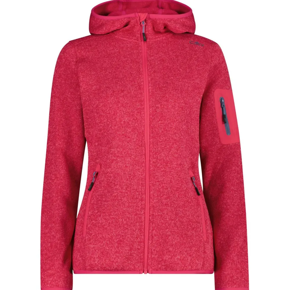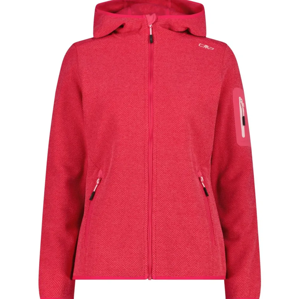 Die Women’s Jacket Fix Hood Jacquard Knitted 3H19826 Fleecejacke von CMP besteht aus funktionellem Knit Tech Fleece mit 280 g/m² Materialstärke. Sie wärmt angenehm, trocknet zügig und leitet Feuchtigkeit vom Körper schnell nach außen. Mit flachen Nähten und ergonomischem Schnitt trägt sie sich dabei wunderbar weich und komfortabel.