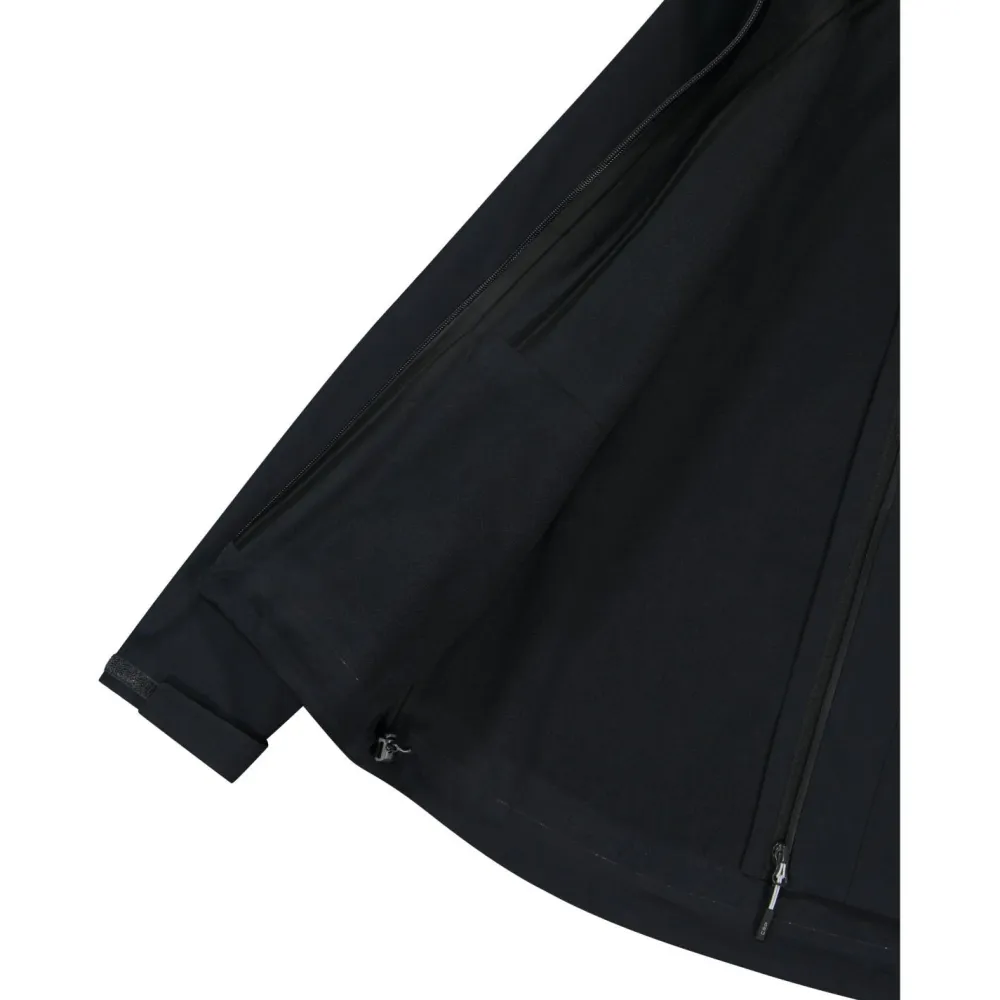 Mit ihrer 15 000 mm Wassersäule und den vollständig getapten Nähten hält sie einen Tag im Regen problemlos aus. Dank des Elasthan-Anteils schränkt Dich die Women’s Jacket Zip Hood Stretch Softshell Softshelljacke nicht in Deinen Bewegungen ein. Damit auch bei ausladenden Bewegungen kein Wasser in die Jacke hineinlaufen kann, ist sie an den Ärmeln mit Klettverschlüssen und am Saum mit einem elastischen und verstellbaren Kordelzug ausgestattet.