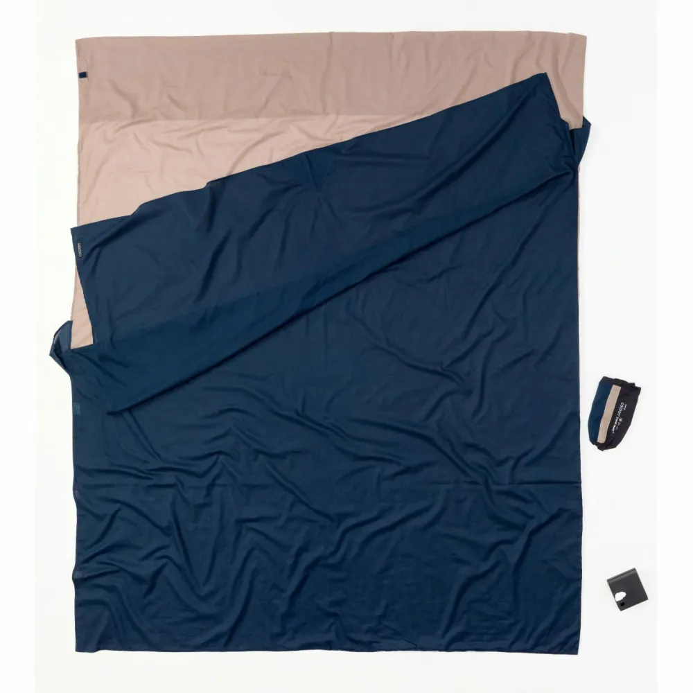 Da hat man auch zu zweit viel Platz – mit dem Travelsheet Doublesize Egyptian Cotton von Cocoon! Der dünne Reiseschlafsack eignet sich hervorragend auf Reisen in Hotels oder Berghütten sowie als dünner Überzug in Regionen mit tropischem Klima, wo ein isolierter Schlafsack zu warm wäre. Mit einer Breite von 180 cm haben beide Schläfer bequem Platz und Bewegungsfreiheit. Die feine ägyptische Baumwolle bringt weniger auf die Waage als normale Baumwolle und bietet gleichzeitig ein ebenso angenehmes Gefühl auf der Haut. Noch dazu ist diese Baumwolle äußerst robust.Das Travelsheet ist zudem mit Klettverschlüssen zum Seiteneinstieg sowie mit Einschubtaschen für die Kissen ausgestattet. Egal ob solo als dünner Schlafsack oder als hygienischer Überzeug auf Reisen – das Travelsheet Doublesize Egyptian Cotton von Cocoon punktet in jeder Hinsicht mit viel Komfort!