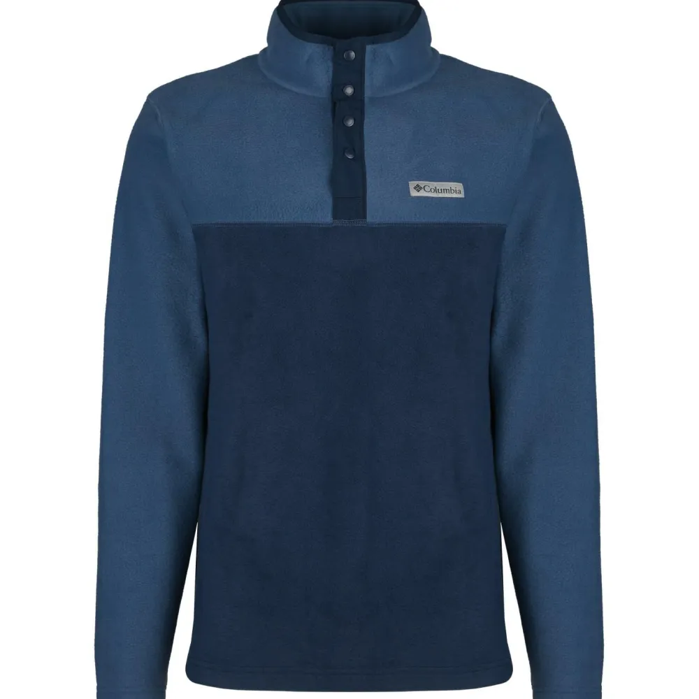 Ein vielseitiger Midlayer ist der Fleecepullover Steend Mountain Half Snap II von Columbia! Sein Materialmix ist angenehm weich und isoliert zuverlässig. Der Stehkragen schützt Dich vor Zugluft und Kälte im Nackenbereich. Gleichzeitig ist der Midlayer atmungsaktiv. Elastische Bündchen optimieren die Passform. Ein Allrounder für Alltag und Wandertouren!