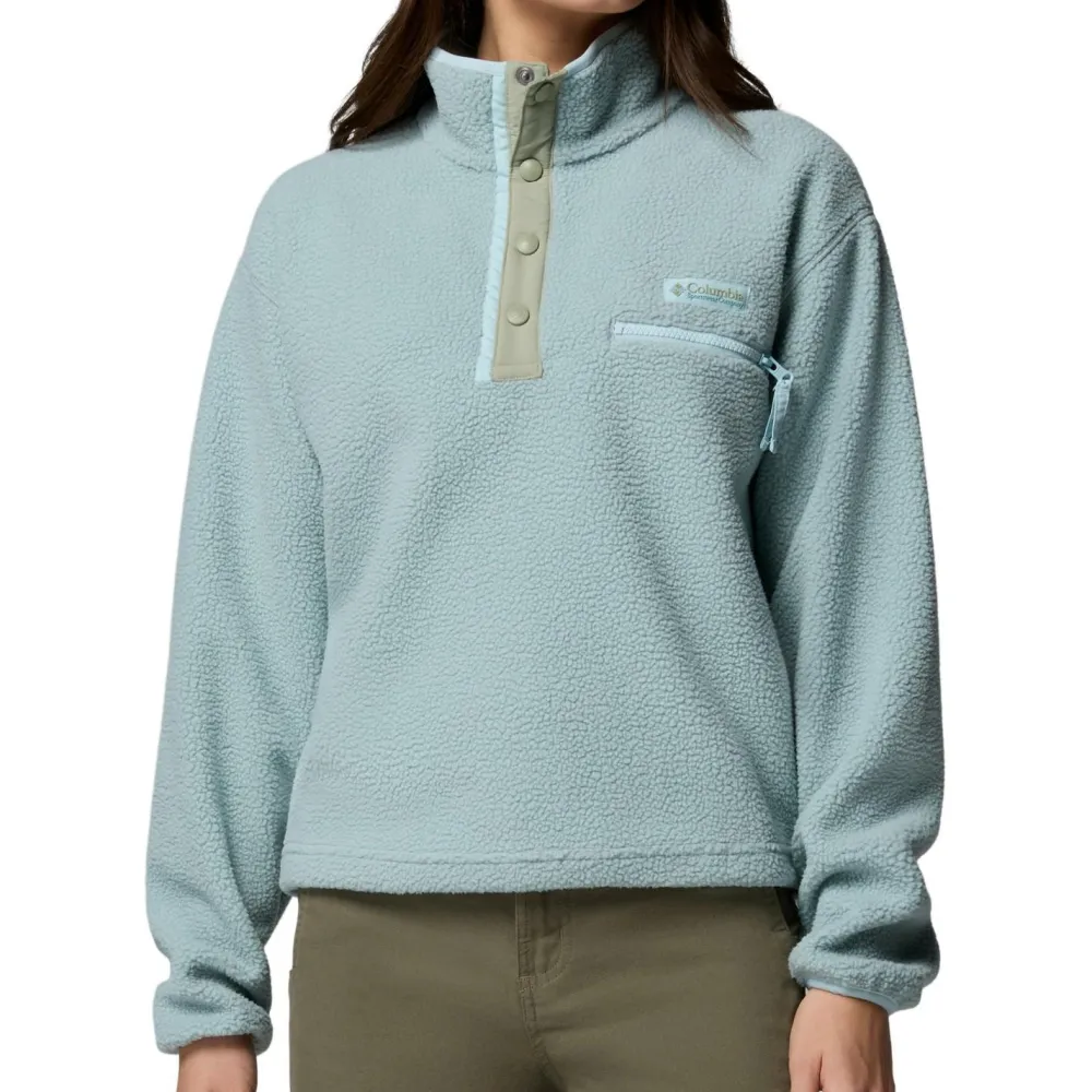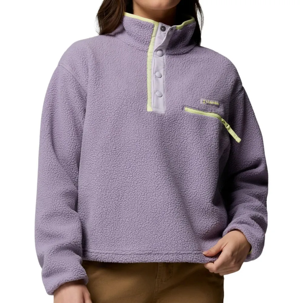 Mit dem Women’s Helvetia II Cropped Half Snap Fleece von Columbia kannst Du an kalten Tagen auf Erkundungstour gehen. Er ist atmungsaktiv und schnelltrocknend. Der Fleecepullover vereint Tragekomfort und Funktionalität mit einem modernen und lässigen Design.