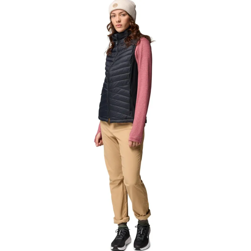 Die Women’s Powder Pass III Hybrid Vest von Columbia passt mit ihrem geringen Gewicht und dem tollen Packmaß in nahezu jedes Gepäck und bietet eine tolle Wärmeleistung, wenn sie nötig ist. Kommst Du ausgelaugt am Gipfel an und möchtest kurz den Ausblick ins Tal genießen, kann die Kunstfaserweste Gold wert sein. Auch für den Abstieg auf der Schattenseite im Tal kann eine zusätzliche Bekleidungsschicht nicht schaden.