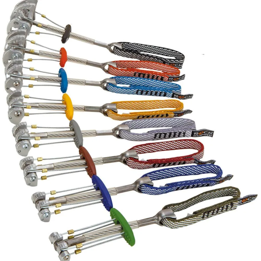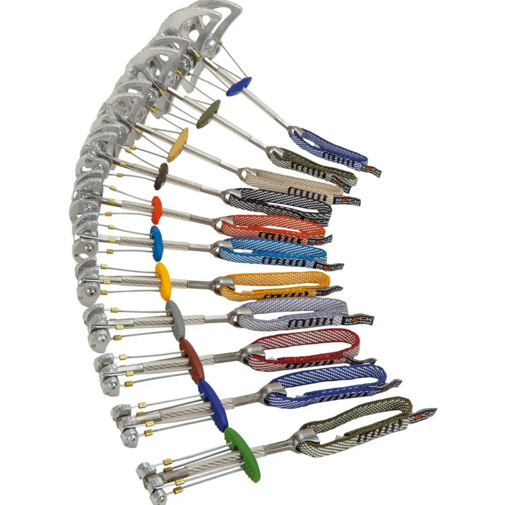 Die Aluminium-Konstruktion mit einfacher Achse sowie flexiblen Stahlkabeln sorgt für ein geringes Gewicht, bei dem man gleichzeitig auf Stabilität nicht verzichten muss. Da wird der Klettergurt nicht allzu sehr beschwert und auch lange Tradrouten werden leichtfüßig bewältigt. Die robuste Dyneemaschlinge kommt je nach Größe in verschiedenen Farben, damit man auf einen Blick die richtigen Cams zur Hand hat. Egal ob für leidenschaftliche Tradkletterer oder all jene, die beim Sportklettern gern zusätzlich absichern – das Comet Set von Rock Empire überzeugt mit bester Qualität und einem optimalen Preis-/Leistungsverhältnis!