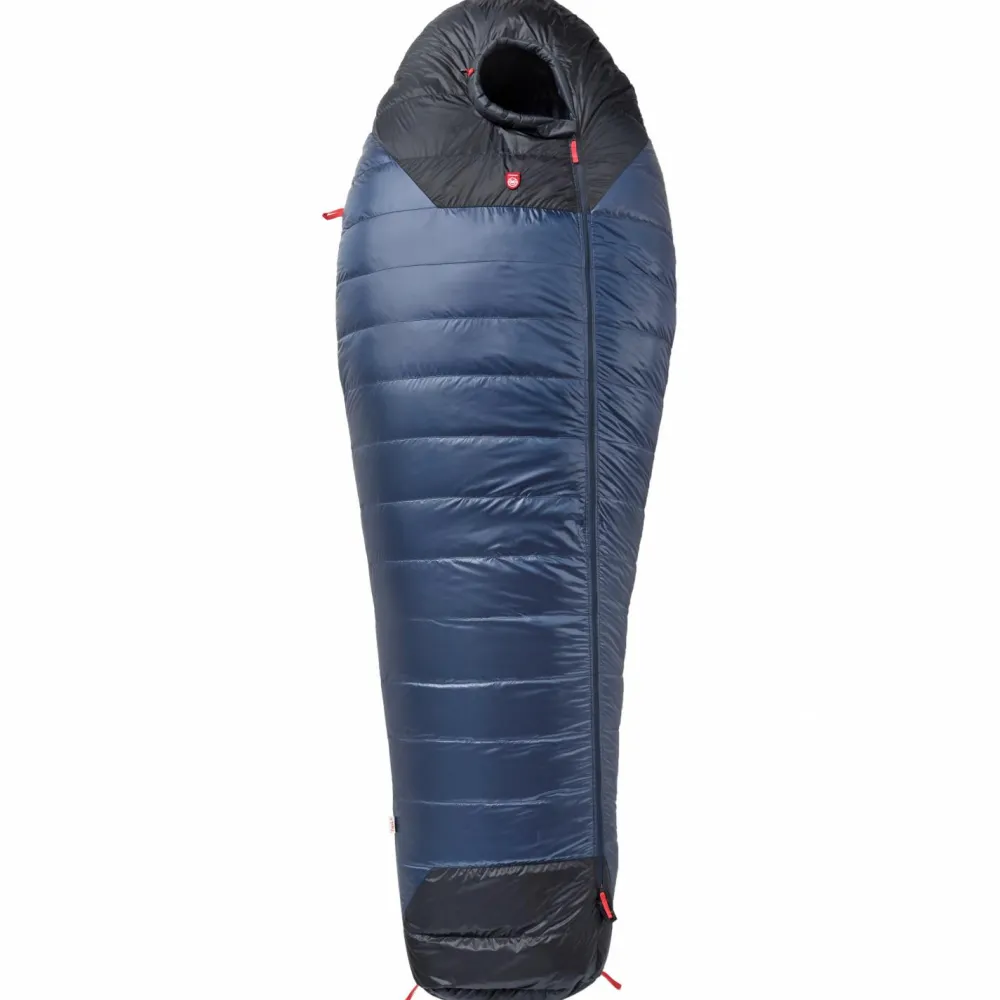 Der Core 950 von Pajak ist ein hochwertiger Daunenschlafsack für Abenteuer bei winterlichen Temperaturen. Die dicke Füllung aus Entendaunen mit einer Bauschkraft von 700 cuin sorgt auch bei tiefen Minustemperaturen für ein behagliches Gefühl. Eine Z-Kammer-Konstruktion macht den Schlafsack verhältnismäßig leicht und sorgt für eine umfassend gute Isolation. Die verstellbare Kapuze kann eng zusammengezogen werden und verhindert hierdurch einen unnötigen Wärmeverlust. Der seitliche Reißverschluss lässt sich leicht bedienen und ermöglicht eine individuelle Belüftung. Damit er sich nicht zufällig öffnet, ist am Kragen ein Klettverschluss angebracht.