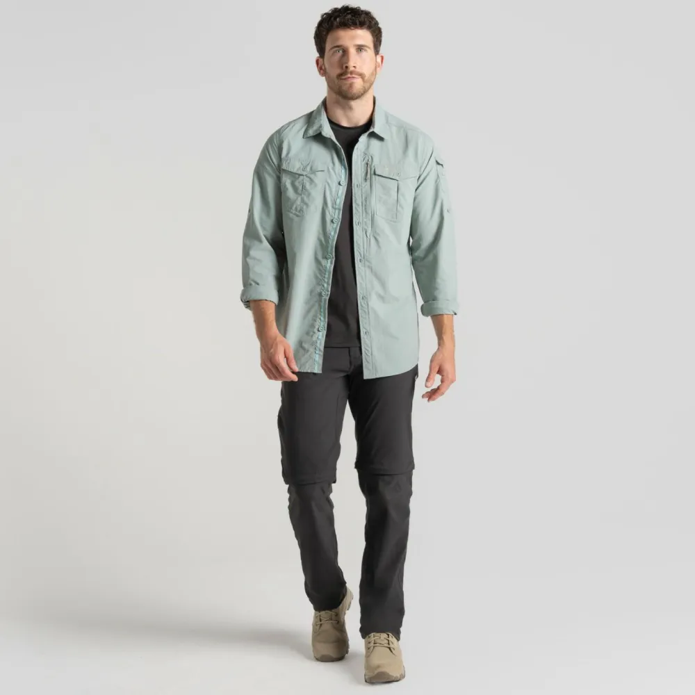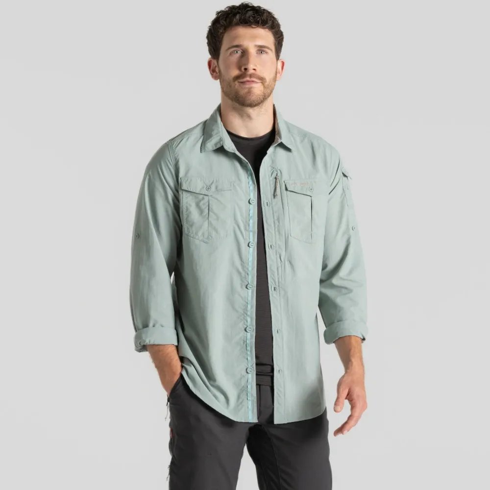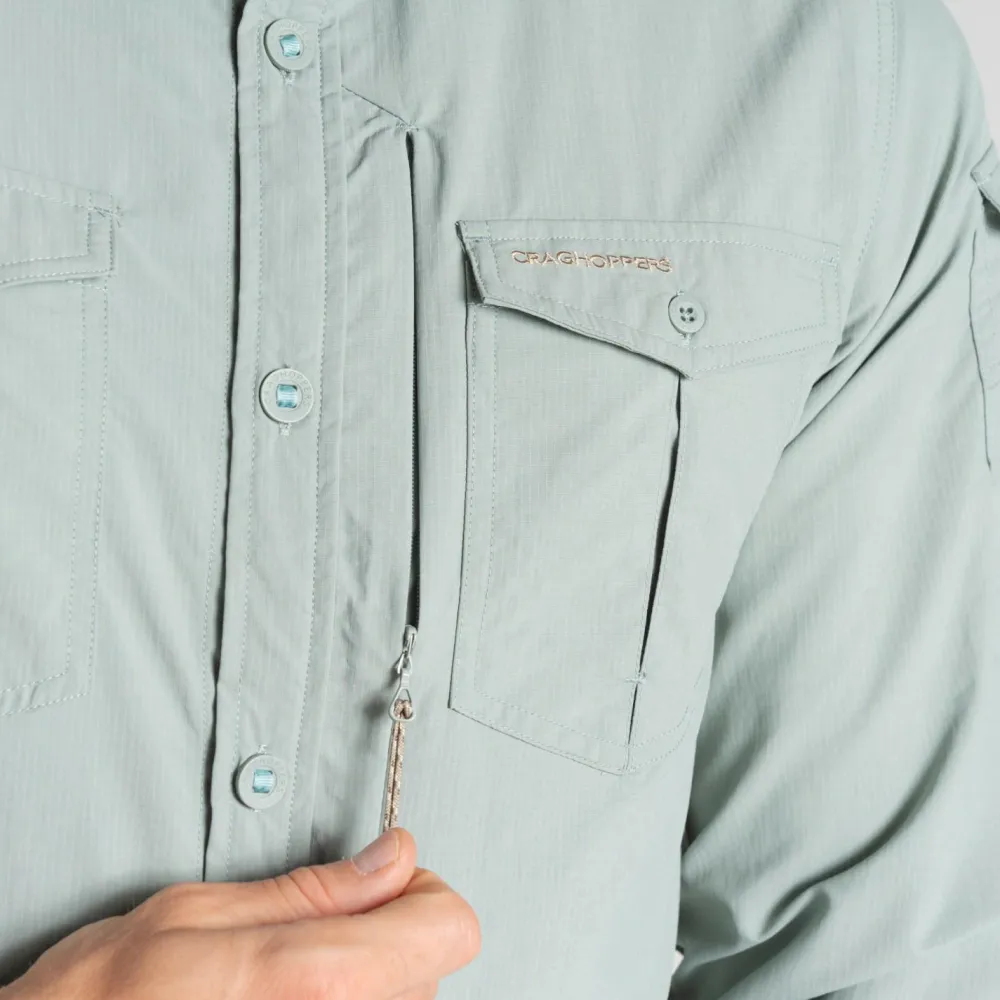 Einfarbiges Hemd mit praktischen Extras gefällig? Kein Problem, hier kommt das Nosilife Adventure Langarm Hemd III von Craghoppers. Dieses Hemd begleitet Dich vor allem bei der aktiven Freizeitgestaltung, kann aber beispielsweise auch auf Reisen punkten. Das Material ist dabei nicht nur angenehm zu tragen, sondern auch atmungsaktiv und schnelltrocknend. Zusätzlich wurde es mit NosiLife behandelt und sorgt so dafür, dass Stechmücken und Zecken fernbleiben. Praktisch, in insgesamt fünf kleineren Taschen kannst Du Utensilien aller Art sicher verstauen.