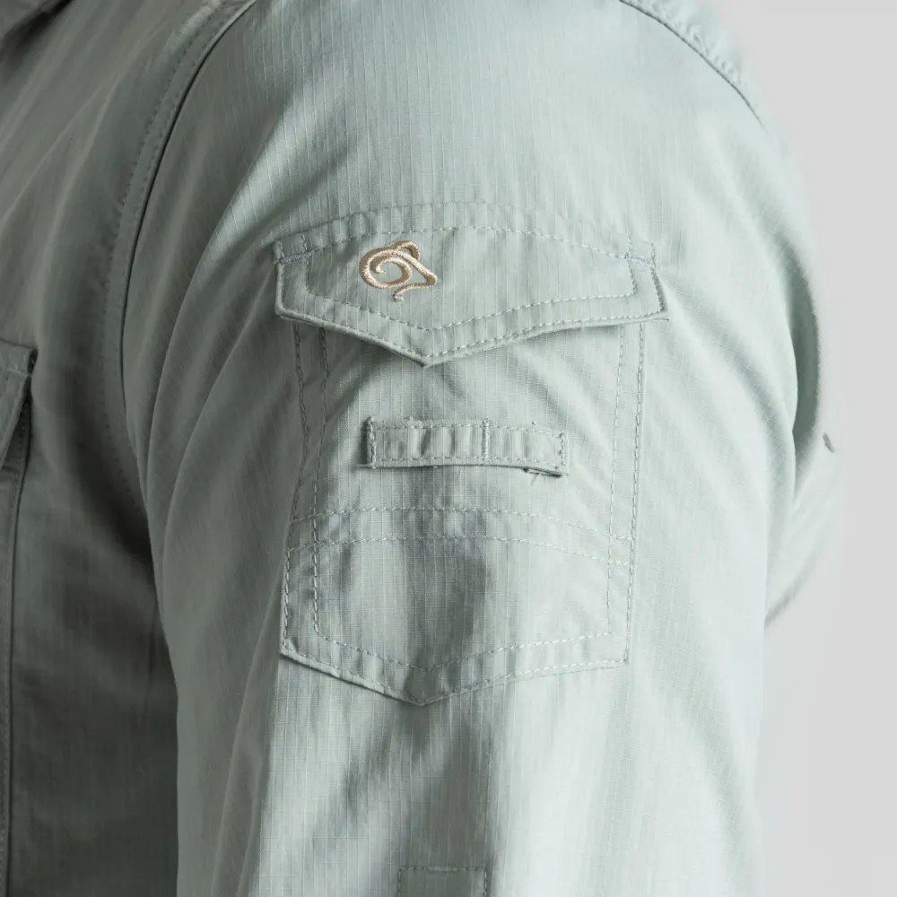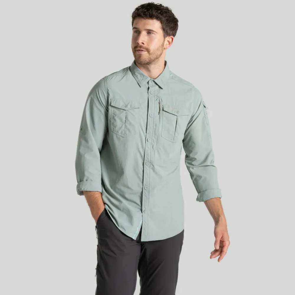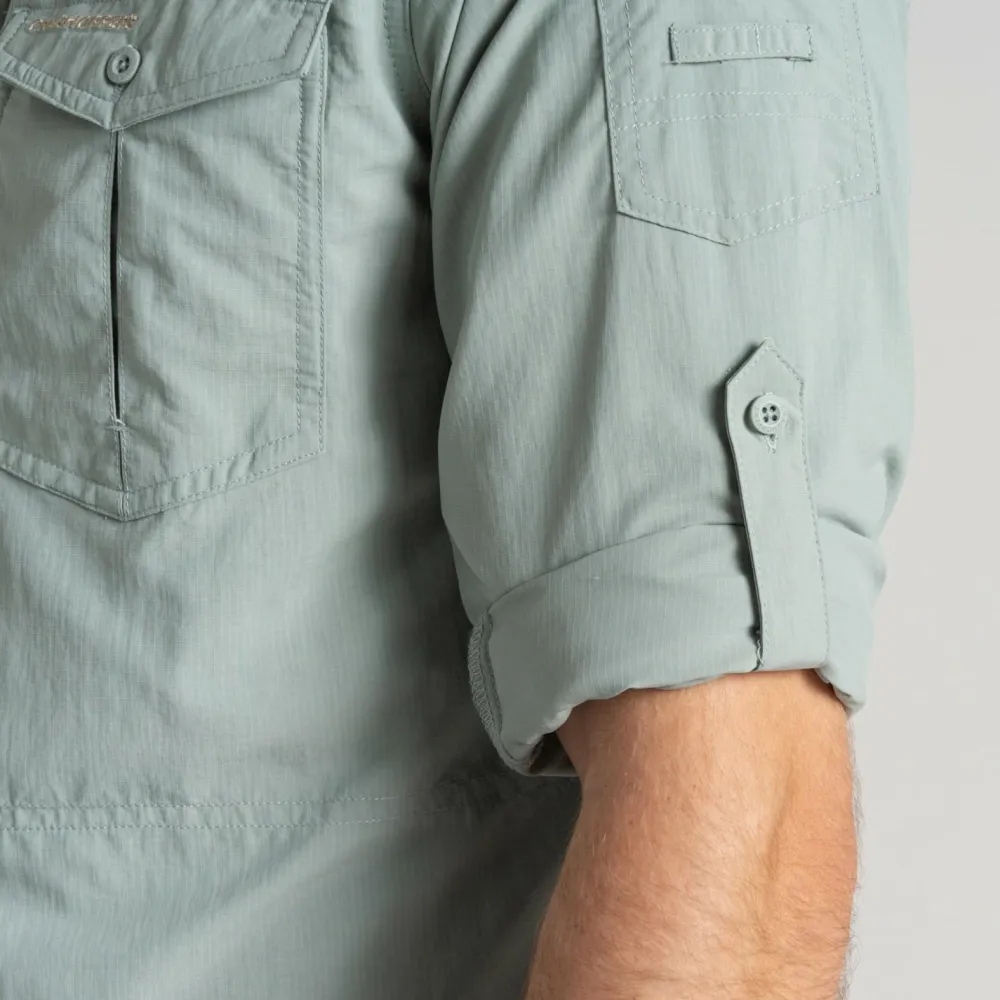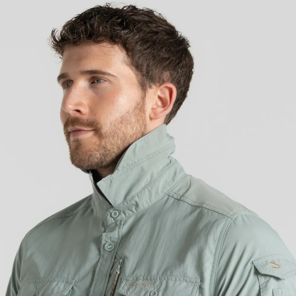 Einfarbiges Hemd mit praktischen Extras gefällig? Kein Problem, hier kommt das Nosilife Adventure Langarm Hemd III von Craghoppers. Dieses Hemd begleitet Dich vor allem bei der aktiven Freizeitgestaltung, kann aber beispielsweise auch auf Reisen punkten. Das Material ist dabei nicht nur angenehm zu tragen, sondern auch atmungsaktiv und schnelltrocknend. Zusätzlich wurde es mit NosiLife behandelt und sorgt so dafür, dass Stechmücken und Zecken fernbleiben. Praktisch, in insgesamt fünf kleineren Taschen kannst Du Utensilien aller Art sicher verstauen.