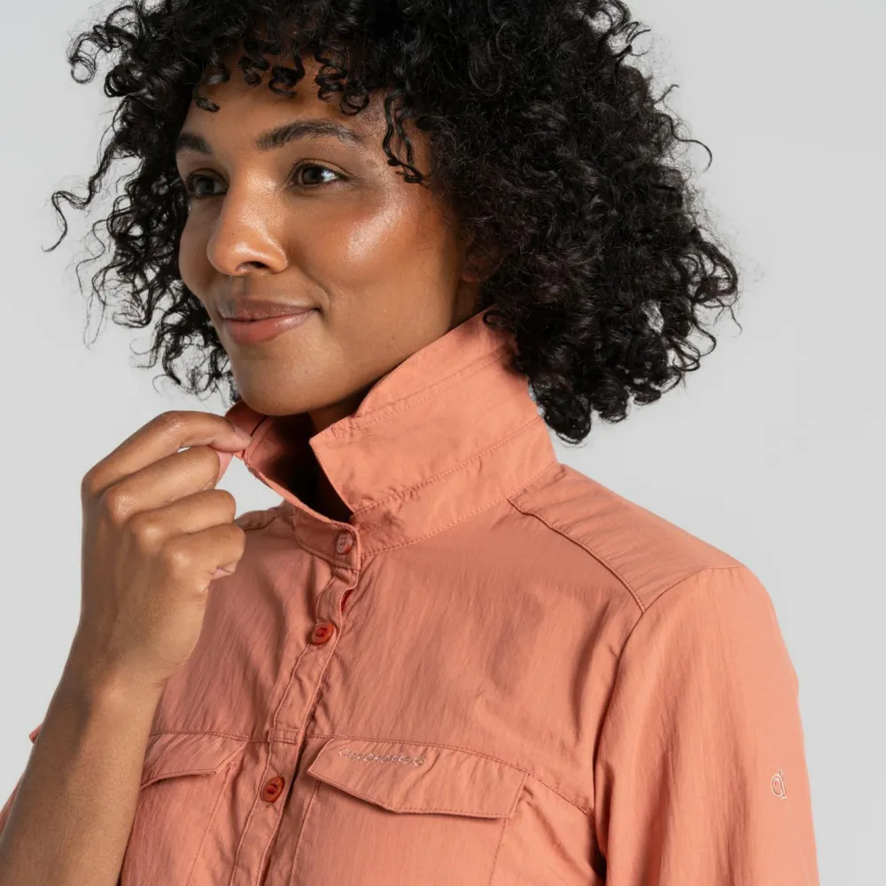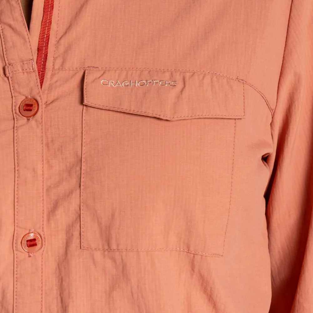 Für Deine nächste Reise oder die aktive Freizeitgestaltung ist die Women’s Nosilife Adventure Langarm Bluse III von Craghoppers bestens geeignet. Diese Bluse sitzt durch den taillierten Schnitt immer gut, engt dabei aber nicht ein. Das Material ist sehr angenehm zu tragen und sorgt durch die NosiLife-Behandlung dafür, dass Insekten abgehalten werden. Durch das dezente und einfarbige Design kannst Du die Bluse außerdem problemlos kombinieren.