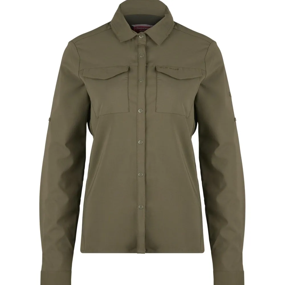 Wandern, Trekking und eine generell aktive Freizeitgestaltung sind mit der Women’s Nosilife Pro Langarm Bluse V von Craghoppers kein Problem. Diese Bluse ist sehr angenehm zu tragen und engt Dich aufgrund des nahezu geraden Schnitts und des elastischen Materials nicht ein. Zusätzlich ist das Material aber auch atmungsaktiv und schnelltrocknend. Praktisch: Die NosiLife-Behandlung hält lästige Stechmücken und Zecken zuverlässig fern.