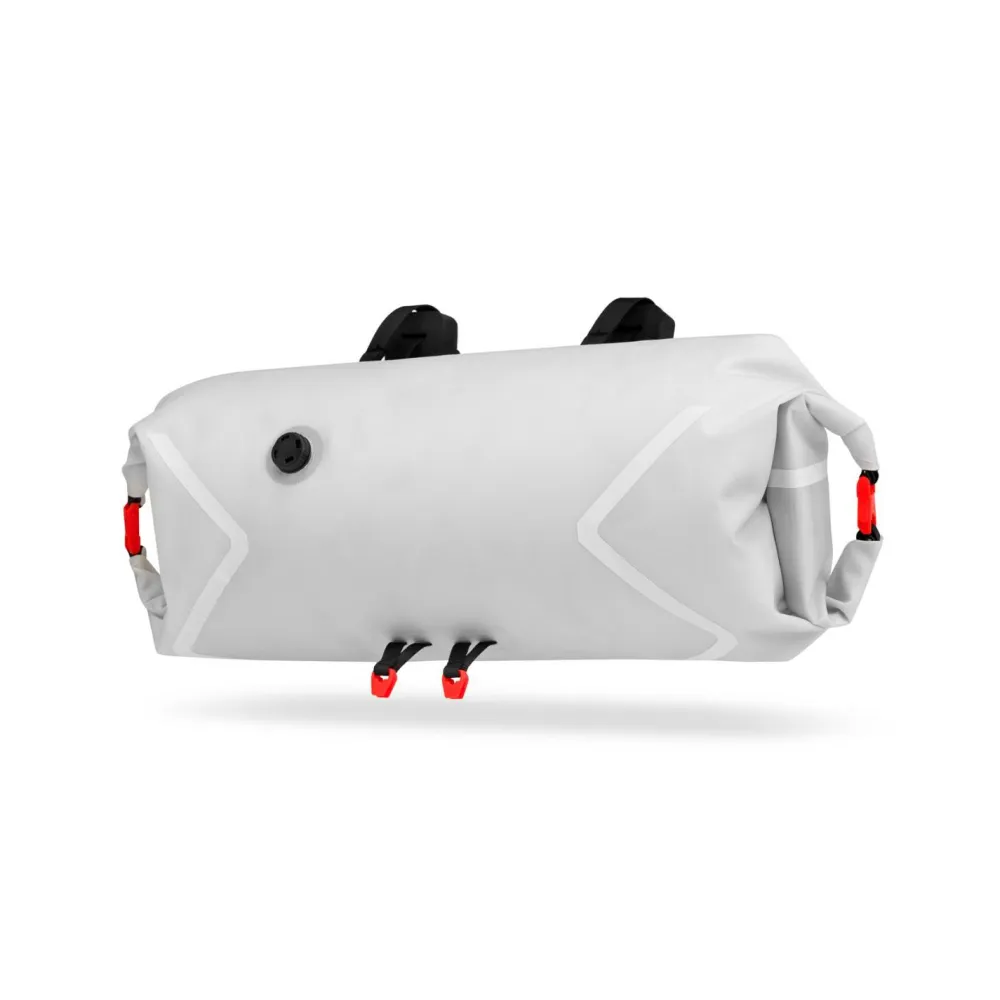 Der beidseitige Rollverschluss erleichtert das Packen und sorgt für eine kompakte Form. Über die Kompressionsgurte lassen sich die Enden sicher fixieren, sodass bei Rennradlenkern die Bremsgriffe frei bleiben. Dank integriertem Ventil kann überschüssige Luft abgelassen werden – für eine noch effizientere Kompression. Elastische Front-Straps bieten zusätzliche Fixiermöglichkeiten, während der neue Abstandsschaum das Steuerrohr schützt.