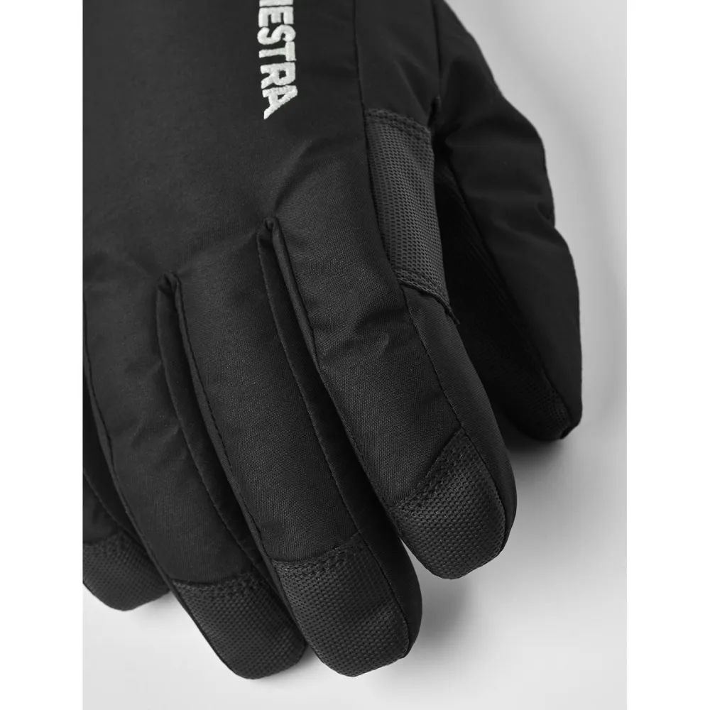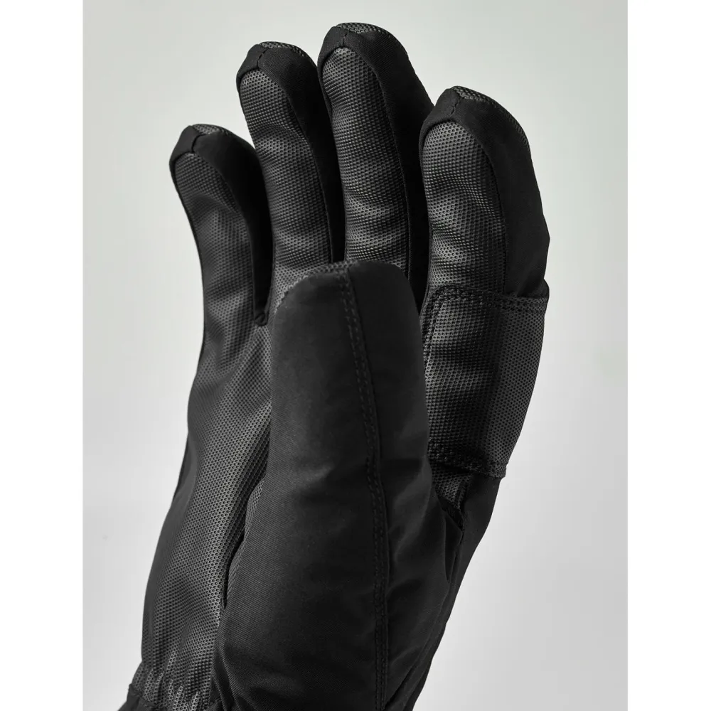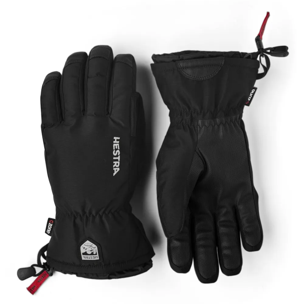 Kunstfaserhandschuhe für den alpinen Einsatz – die Czone Cosmo 5 Finger von Hestra. Dank Kordelzug am Handgelenk und Schneeschutz haben Schnee und Nässe keine Chance. Das atmungsaktive, sowie wasser- und winddichte Kunstfasermaterial ist dabei den Herausforderungen in den Bergen gewappnet.