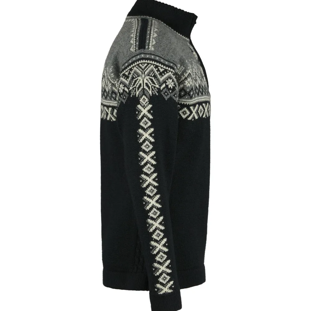 Der 140th Anniversary Sweater von Dale of Norway ist ein Wollpullover, der ganz speziell zum 140-Jahr-Jubiläum des norwegischen Herstellers angefertigt wurde. Der Pullover kommt in einer traditionellen norwegischen Acht-Blüten-Rose kombiniert mit einem klassischen Norwegen-Muster. Dadurch sorgt er für eine tolle Optik, ganz egal ob in der Freizeit oder im Alltag. Zudem besteht er aus einhundert Prozent aus langlebiger, norwegischer Wolle. Dadurch trägt er sich nicht nur super angenehm auf der Haut, er gibt auch wohlig warm. Praktisch ist der 1/4-lange Front-Reißverschluss, der dem Pullover nicht nur einen sportlichen Look gibt, sondern auch als Temperaturregulierung dient. Da hat sich der norwegischer Hersteller einen tollen Traditionspullover einfallen lassen!