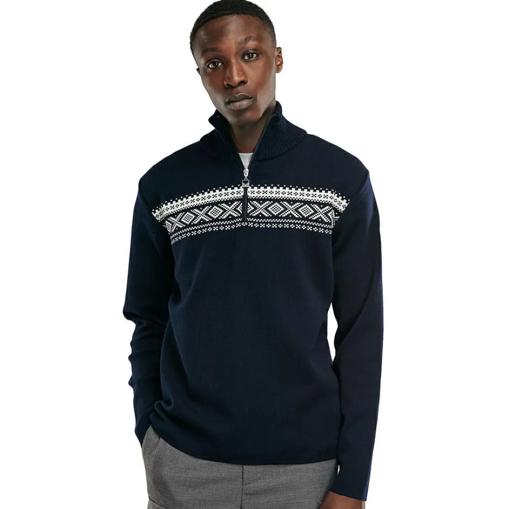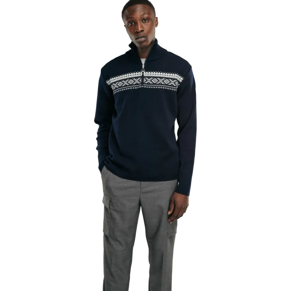 Der Dalestølen Sweater von Dale of Norway überzeugt durch sein klassisches Design. Er ist nicht nur bequem in der Freizeit, sondern kann selbst im Büro getragen werden. Das Norwegenmuster im Brustbereich macht ihn zu einem echten Hingucker. Die Ärmel sind so designt, dass sie sich optimal anschmiegen, ohne dabei einzuengen.