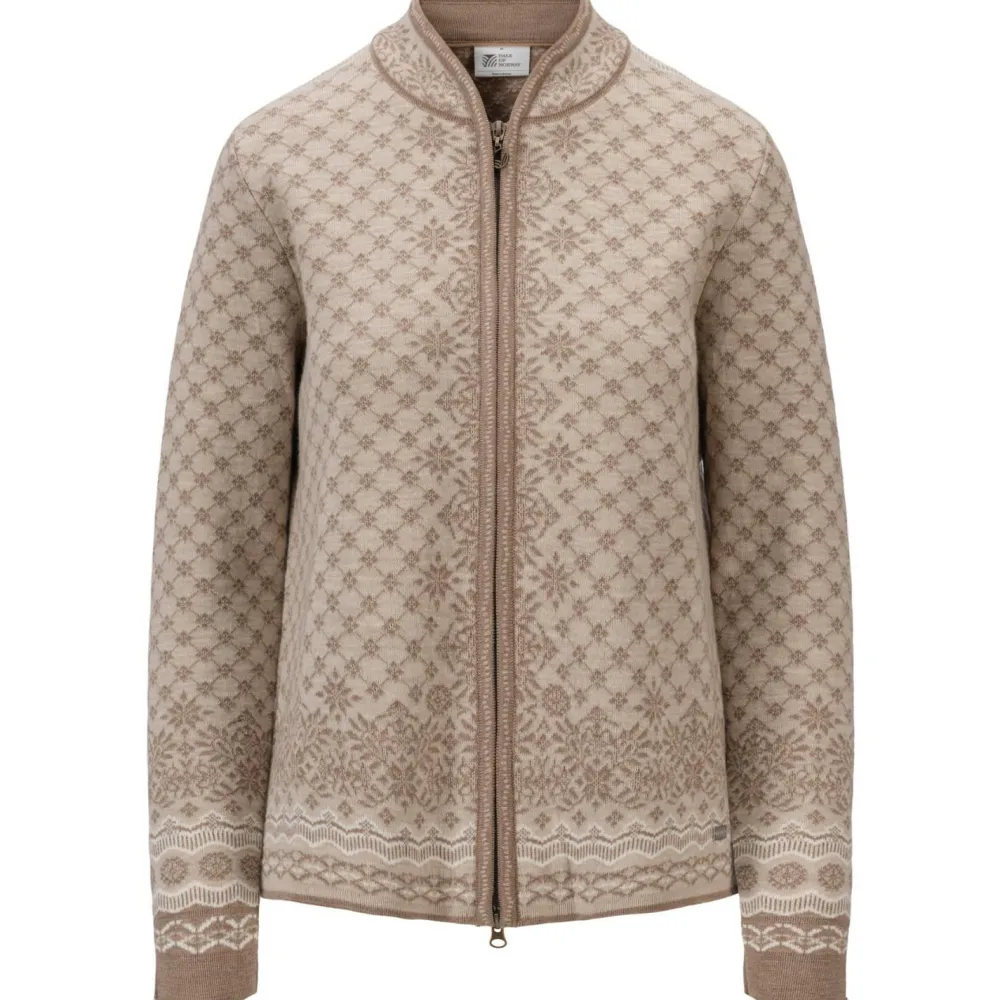 Schick, elegant und dennoch sportlich zeigt sich die Women’s Solfrid Jacket von Dale of Norway. Diese Wolljacke überzeugt aber nicht nur durch ihre gute Optik, sondern vielmehr auch durch das besonders angenehme Material. Dieses ist sehr fein und fühlt sich auf der Haut äußerst angenehm an. Außerdem bewirkt es eine gute Wärmeisolation und ermöglicht obendrein ein optimales Körperklima. Der leicht taillierte Schnitt wirkt dabei nicht einengend, sodass eine gute Bewegungsfreiheit erhalten bleibt. Durch das attraktive aber gleichzeitig zurückhaltende Design kann diese Jacke vielseitig kombiniert werden und ist so ein echter Zugewinn für Alltag, Freizeit und Reise.