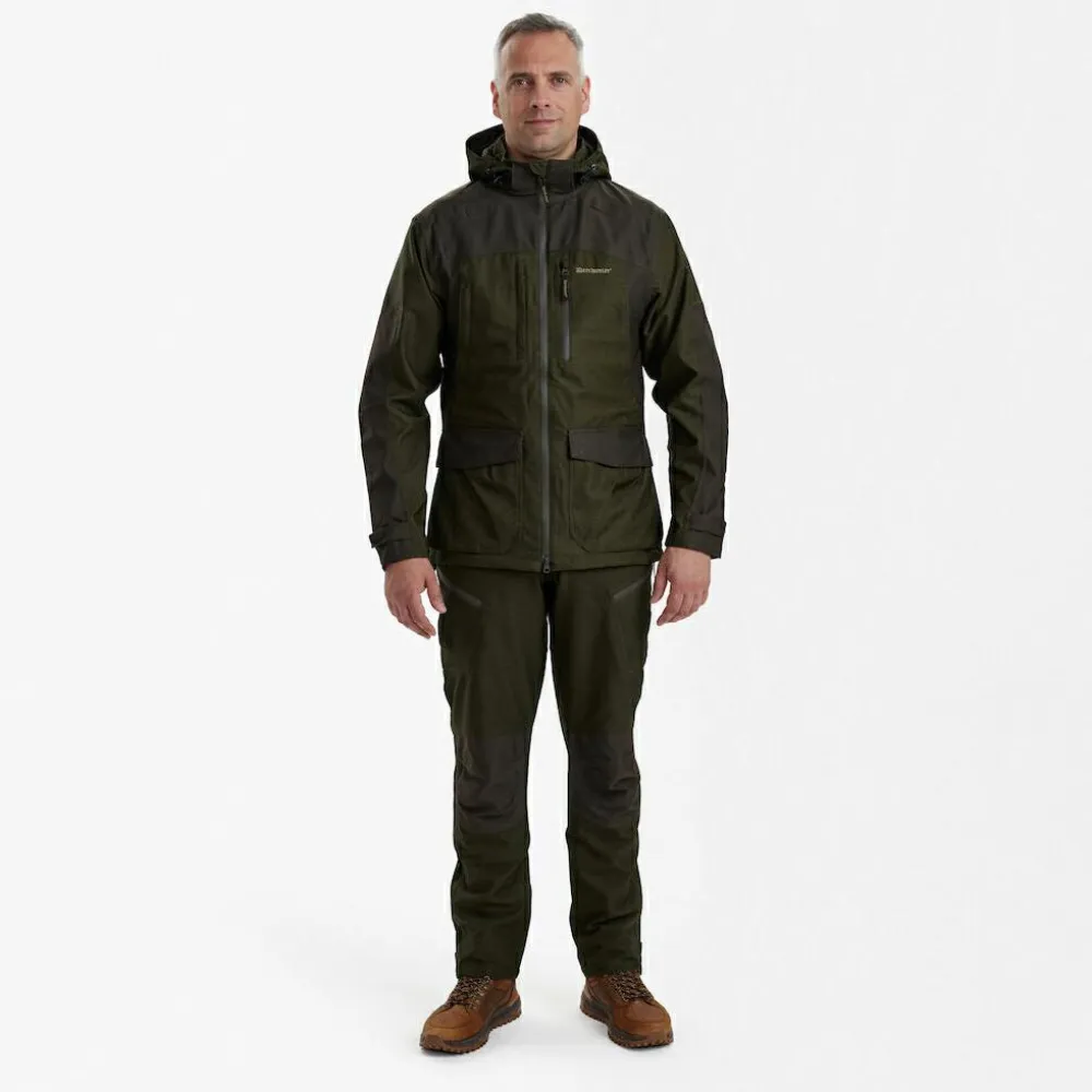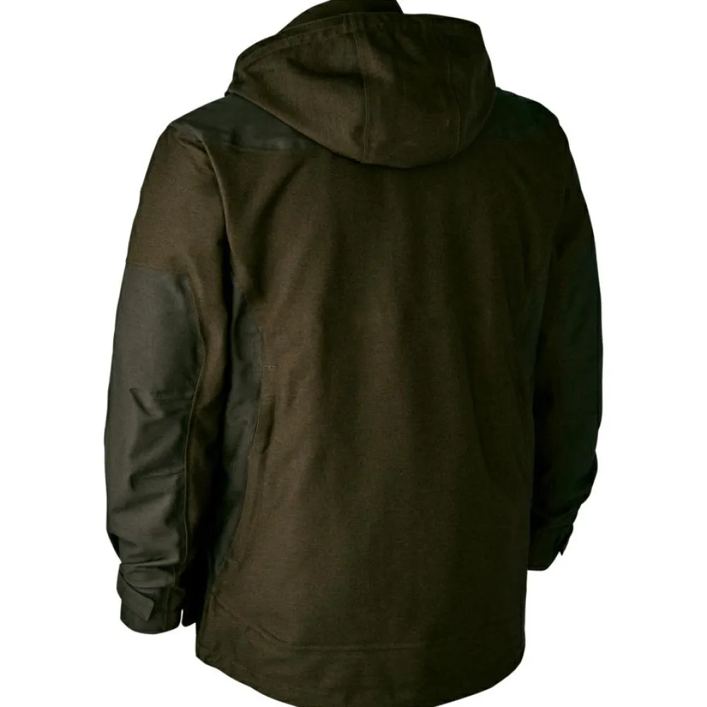 Die Chasse Jacket von Deerhunter kommt in einem schlichten Look daher und passt sich an die Natur nicht nur optisch perfekt an. Damit Dir verschiedene Wettereinflüsse nicht den Tag verderben können, ist die Jacke rundum wind- und wasserdicht. Durch die dauerhafte Imprägnierung perlt Regen einfach ab und das Innere der Jacke bleibt angenehm trocken. Um den empfindlichen Kopfbereich zu schützen ist die Jacke mit einer Kapuze ausgestattet. Diese kann nach Belieben abgenommen – und in der Passform verstellt werden.