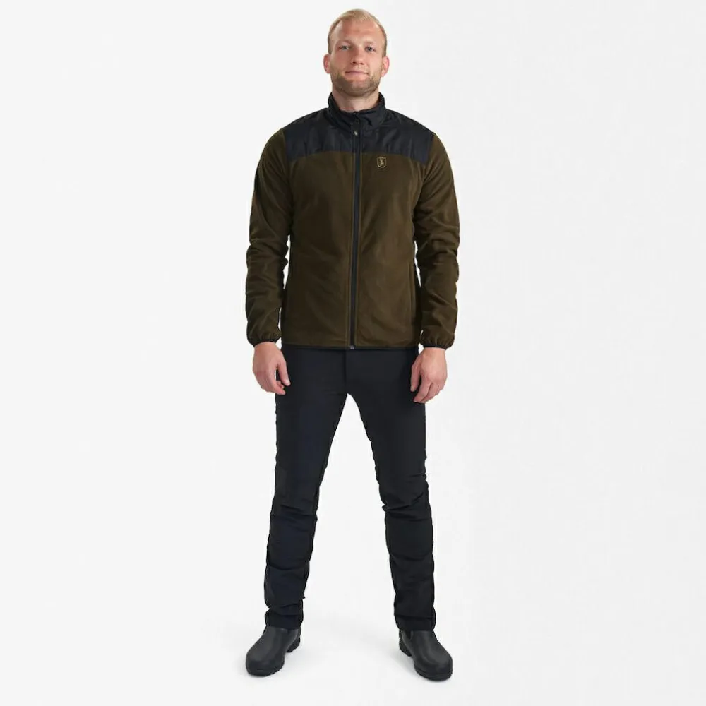 Deerhunter fertigt die Northward Fleece Jacket Fleecejacke zu 100% aus 160 g/m² dickem Polyester. Außerdem sorgen Verstärkungen aus Polyester im Schulterbereich für erhöhte Stabilität und besseren Wetterschutz. Auch für das Tragen von Rucksäcken eignet sich die wärmende Fleecejacke so besonders gut.