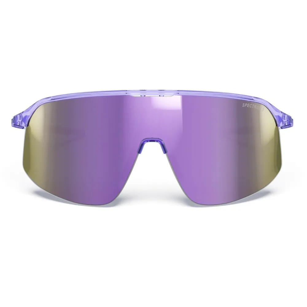 Sportlich, lässig und funktionell, das ist die Density Spectron S3 (VLT12%) von Julbo. Diese Fahrradbrille mit großer Scheibe begleitet Dich beispielsweise beim Radfahren oder Running. Durch den filigranen Halbrandrahmen ist sie dabei gut belüftet und sitzt angenehm. Gummierungen am Nasensteg und den Bügeln verhindern, dass die Brille rutscht. Die zylindrische Scheibe entspricht dabei der Schutzklasse 3 und hält durch die Verspiegelung auch grelles Licht zuverlässig ab.