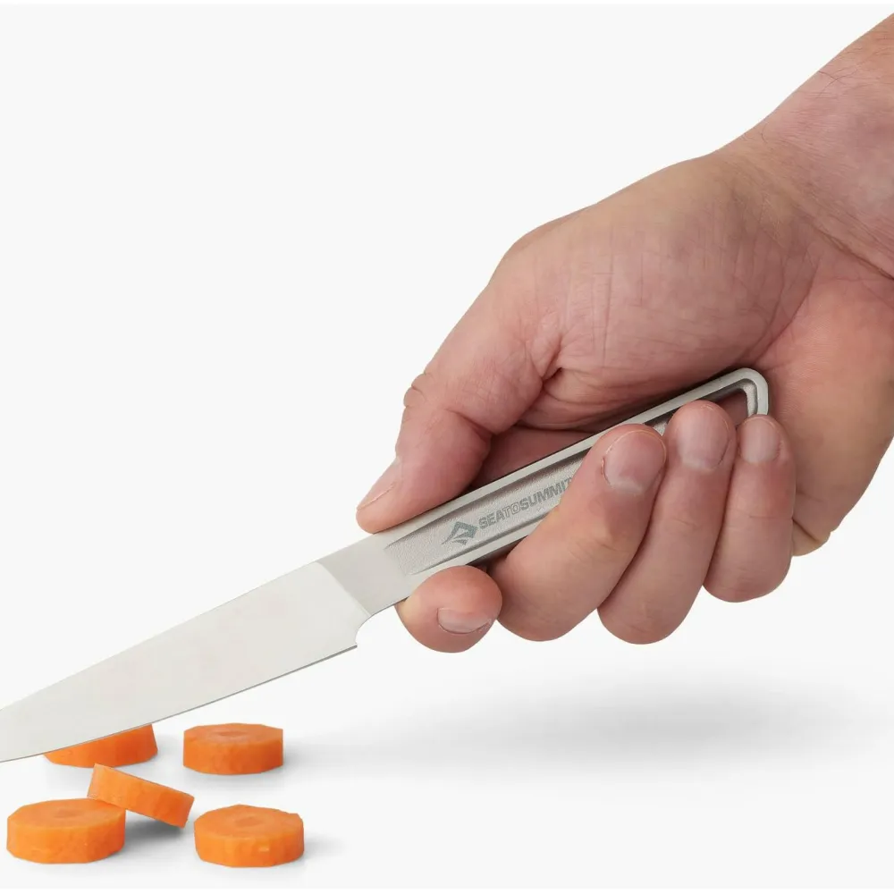 Die Detour-Campinggeschirr-Serie von Sea to Summit besteht aus einer Reihe von unverzichtbaren Begleitern für Camping-Ausflüge und Trekking-Touren, und auch das Detour Stainless Steel Paring Knife macht da keine Ausnahme. Es ist ein praktisches Kochmesser aus Edelstahl, das bestens zum Schälen und Vorbereiten von Gemüse und Obst geeignet ist, und Dir unterwegs schnelle Küchenarbeiten ermöglicht.