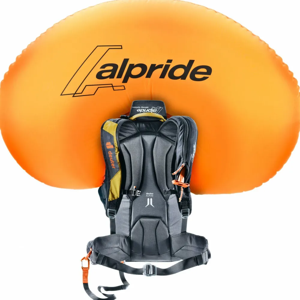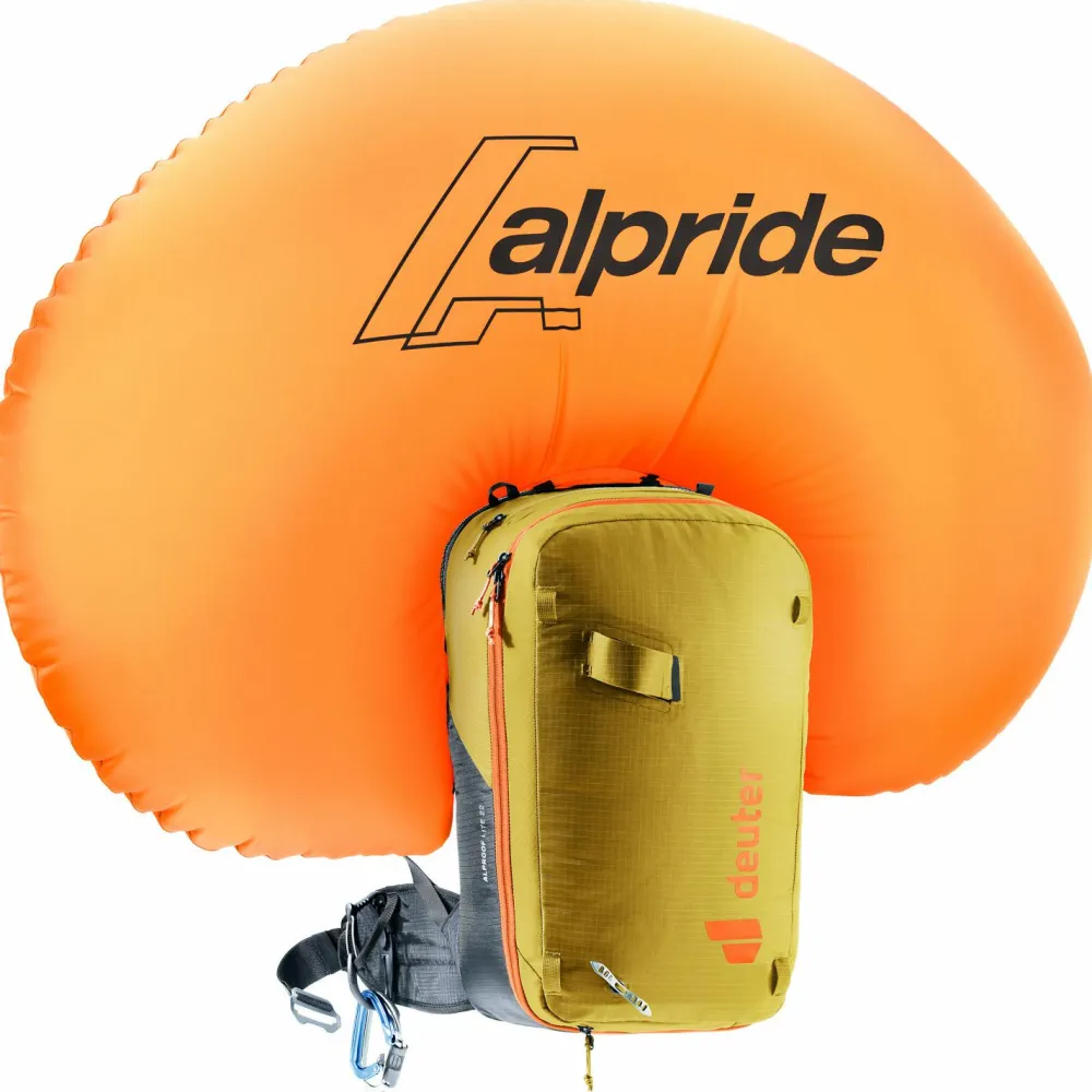 Deine Lawinenausrüstung wie Sonde und Schaufel lässt sich im robusten LVS-Fach auf der Innenseite verstauen. Die aufgedruckte SOS Anleitung hilft Dir dabei, im Notfall den Überblick zu bewahren. Das vollelektronische Alpride E2 Airbag System überzeugt mit einfacher Handhabung und schneller Auslösung. Die integrierte Sicherheitsbeinschlaufe schützt Dich im Falle eines Lawinenabgangs gegen das Verlieren des Rucksacks. Der höhenverstellbare Auslösegriff sowie die hellen Status-LEDs auf der Außenseite machen den deuter Alproof Lite 22 zum idealen Lawinenrucksack für alpine Touren im Gelände.