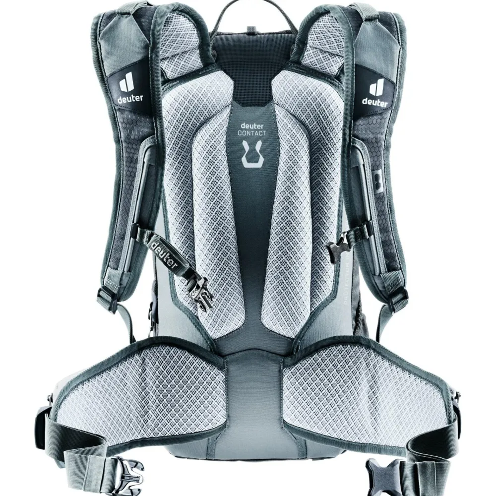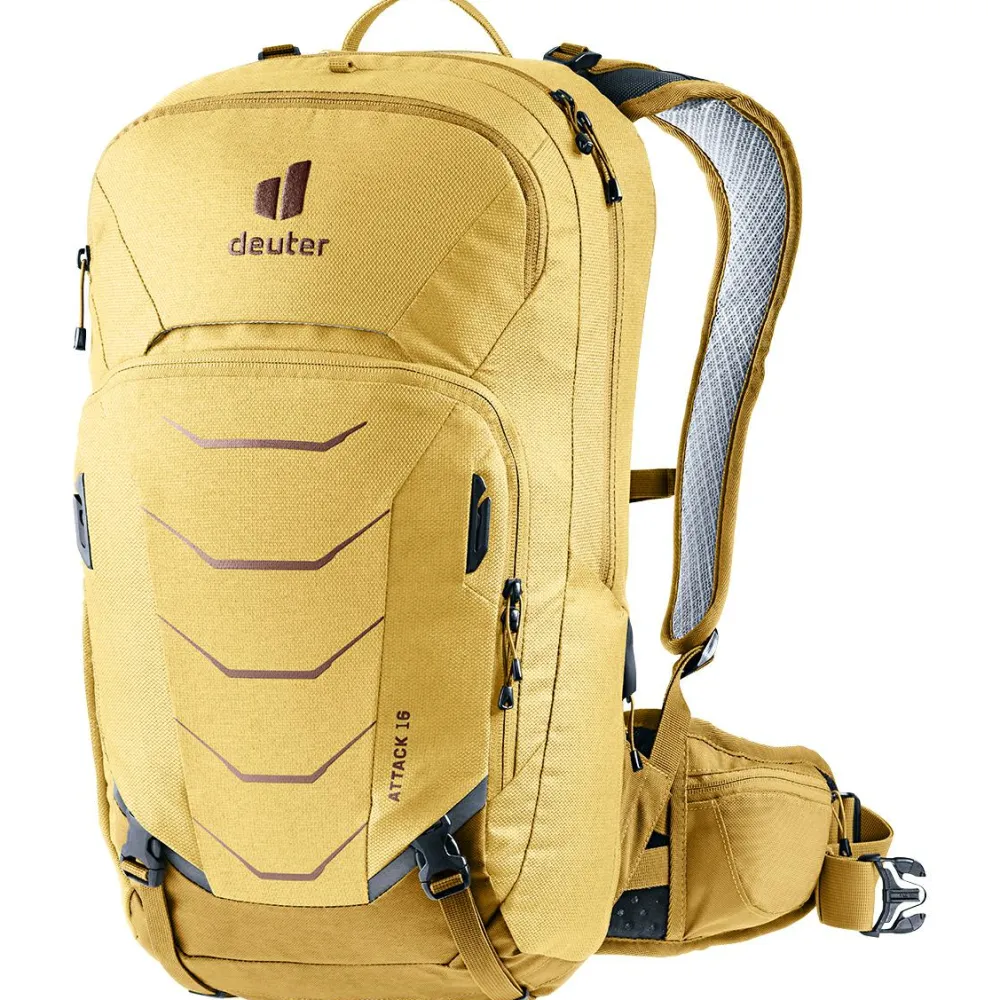 Der Attack 16 von deuter ist ein Bike-Rucksack für ambitionierte Mountainbiker, die einen komfortabel, festsitzenden Rucksack inklusive Rückenprotektor für ruppige Abfahrten wollen – und bergauf in steilen Passagen ihr Bike mühelos auf dem Rücken tragen möchten. Der Rucksack kommt mit einem Volumen von 16 Litern was ausreicht, um alles Wichtige für unterwegs mitzunehmen. Neben dem Hauptfach besitzt er dabei noch viele weitere praktische Features wie beispielsweise eine Brillenhalterung, ein zusätzliches Brillenfach, eine kleine Reißverschlusstasche fürs Handy sowie eine Vordertasche mit großem Organisationsteil und RV-Netztasche für Schlauch, Werkzeug und Pumpenhalterung.