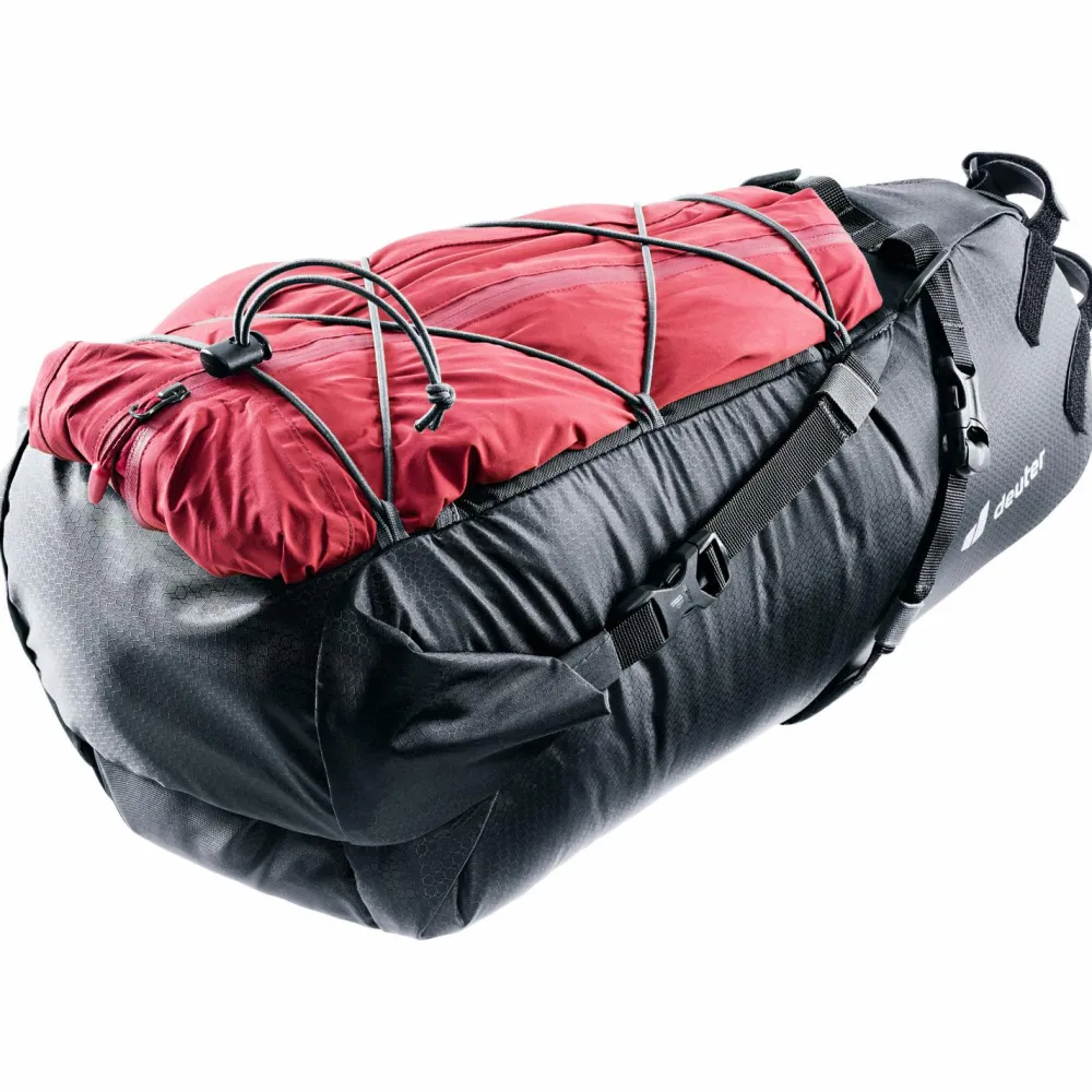 Durch den verstärkten Boden kannst Du die deuter Mondego SB 16 bei jedem Wetter auf den Boden stellen. Die Gepäckträgertasche ist aus robustem Material hergestellt, welches aus recycelten Fasern stammt. Die elastische Gummizughalterung auf der Oberseite eignet sich ideal für den Transport von Bekleidung.