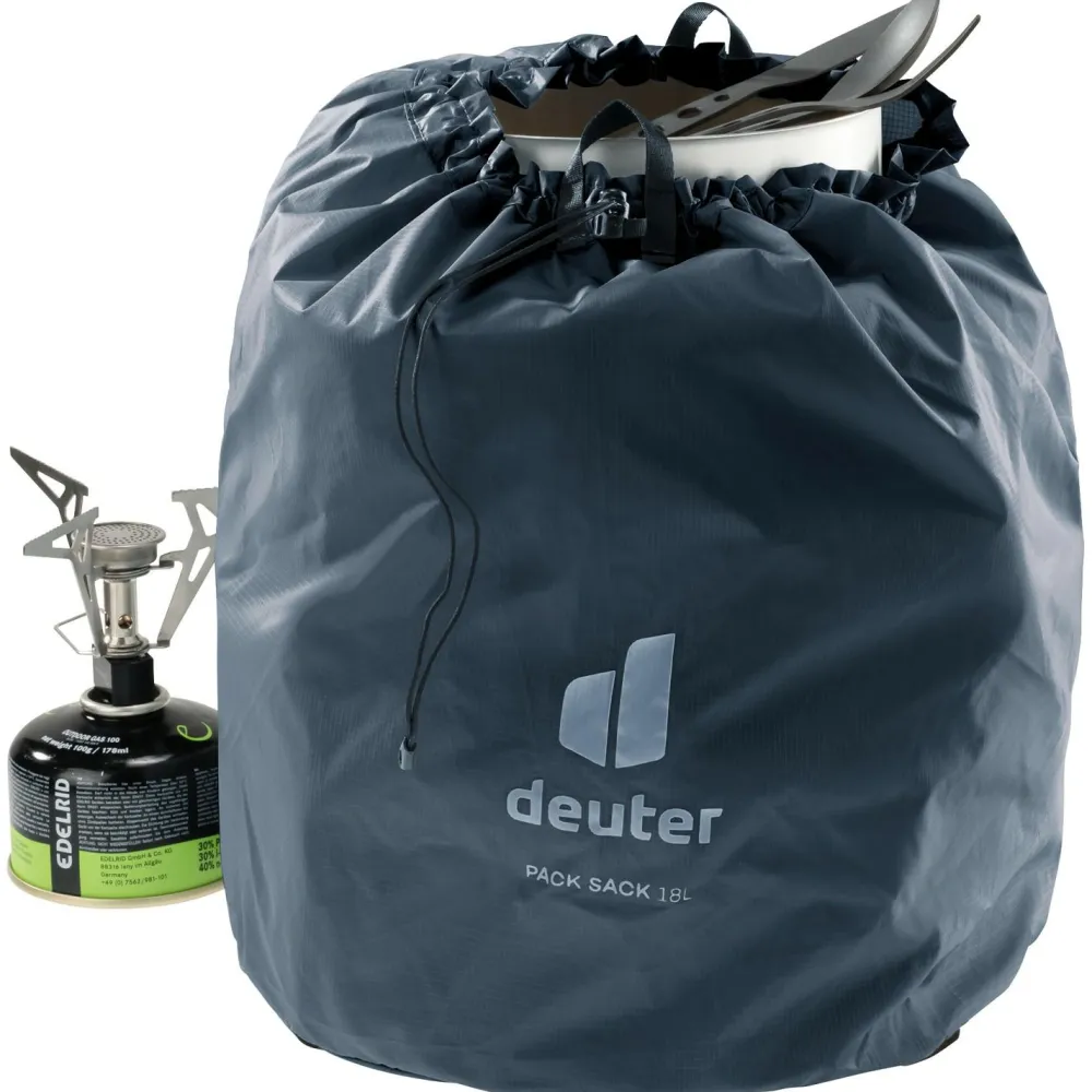 Der Pack Sack 18 von Deuter ist ein leichter und dennoch robuster Packsack für die optimale Innenorganisation im Rucksack. Mit seinem schmutzabweisenden Material bewährt er sich beim Trekking, Bergsteigen und Reisen bestens. Dank des fixierten Kordelstoppers, der Aufhängeschlaufen und des praktischen Handgriffs am Boden ist er leicht zu handhaben. Am besten passt der Pack Sack 18 übrigens zu Campingtöpfen mit bis zu 28 cm Durchmesser!
