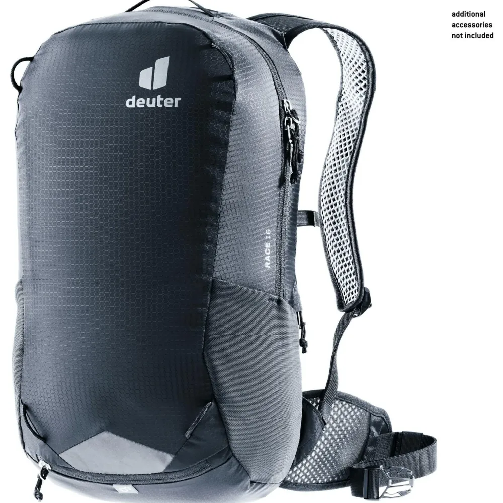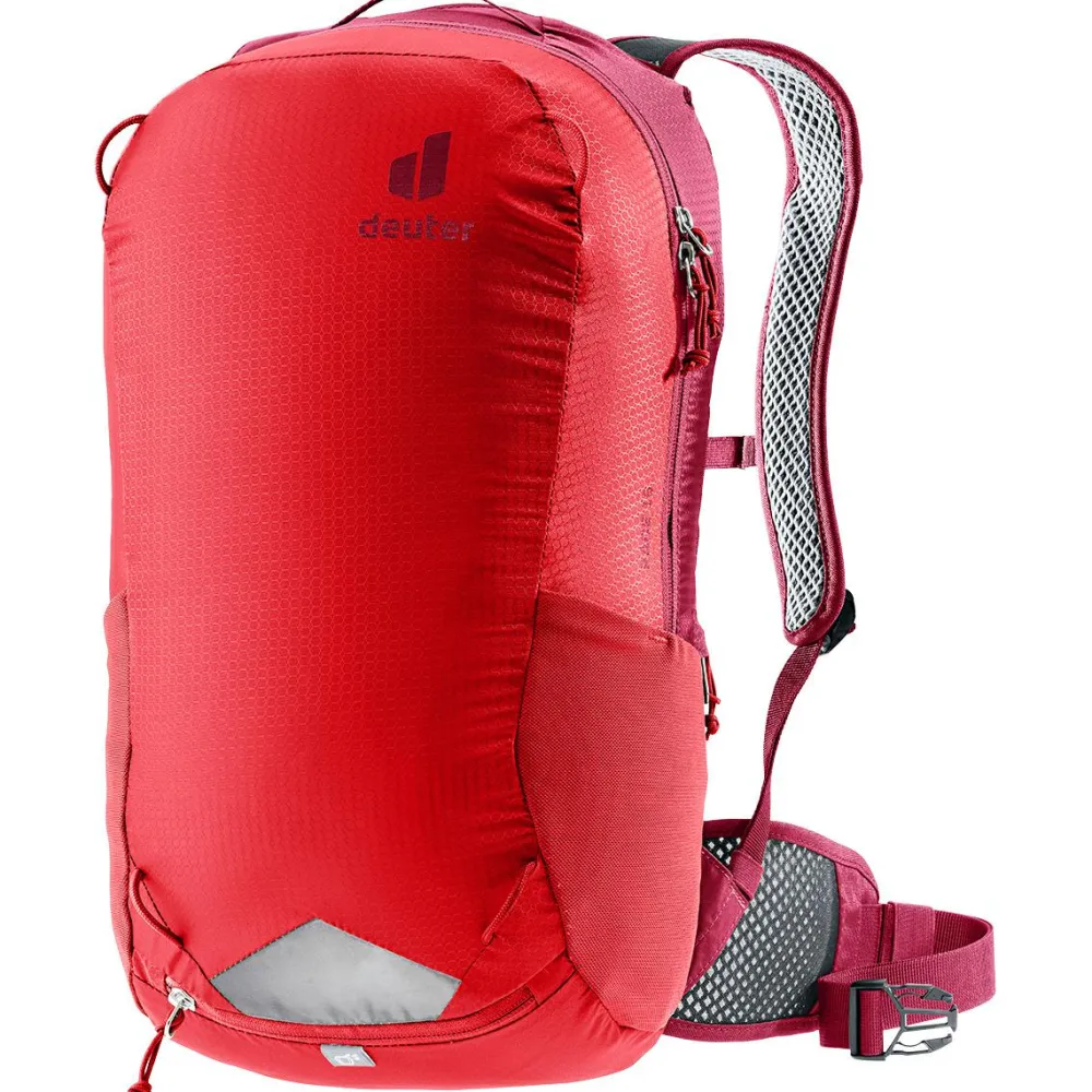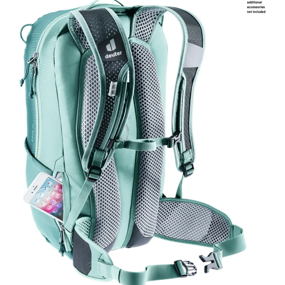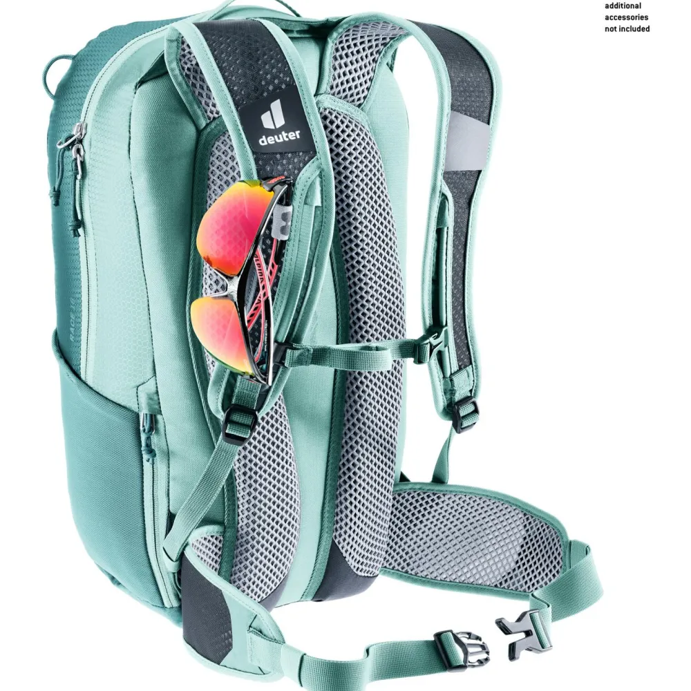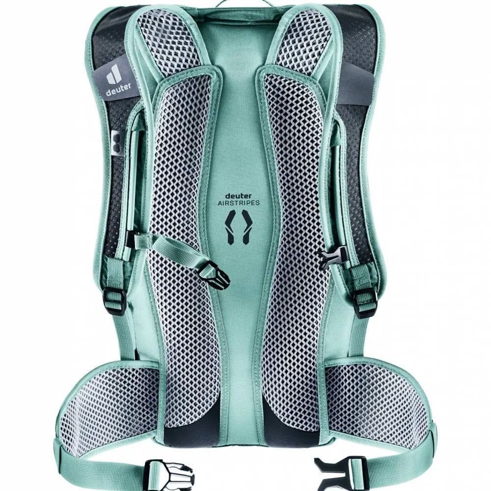 Mit dem deuter Race 16 Bike-Rucksack wird Deine nächste Ausfahrt in den Bergen zu einem vollen Erfolg. Der leichte Fahrradrucksack ist mit dem atmungsaktiven Airstripes Tragesystem konstruiert. Das luftige Mesh-Gewebe im Rückenbereich sowie an den Schulterträgern leitet Feuchtigkeit gezielt nach außen hin ab. Deine Sonnenbrille lässt sich sicher an der Brillenhalterung am Schultergurt befestigen.