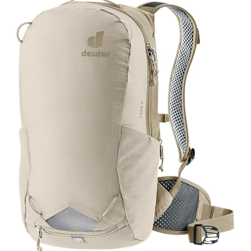 Mit dem Race 8 Bike-Rucksack von deuter wird Deine nächste Mountainbike-Tour in den Bergen zu einer komfortablen Angelegenheit. Der leichte Fahrradrucksack ist mit dem atmungsaktiven Airstripes Tragesystem konstruiert. Das luftige Mesh-Gewebe im Rückenbereich sowie an den Schulterträgern leitet Feuchtigkeit gezielt nach außen hin ab. Die Sonnenbrille lässt sich bequem an der Brillenhalterung am Schulterträger befestigen.