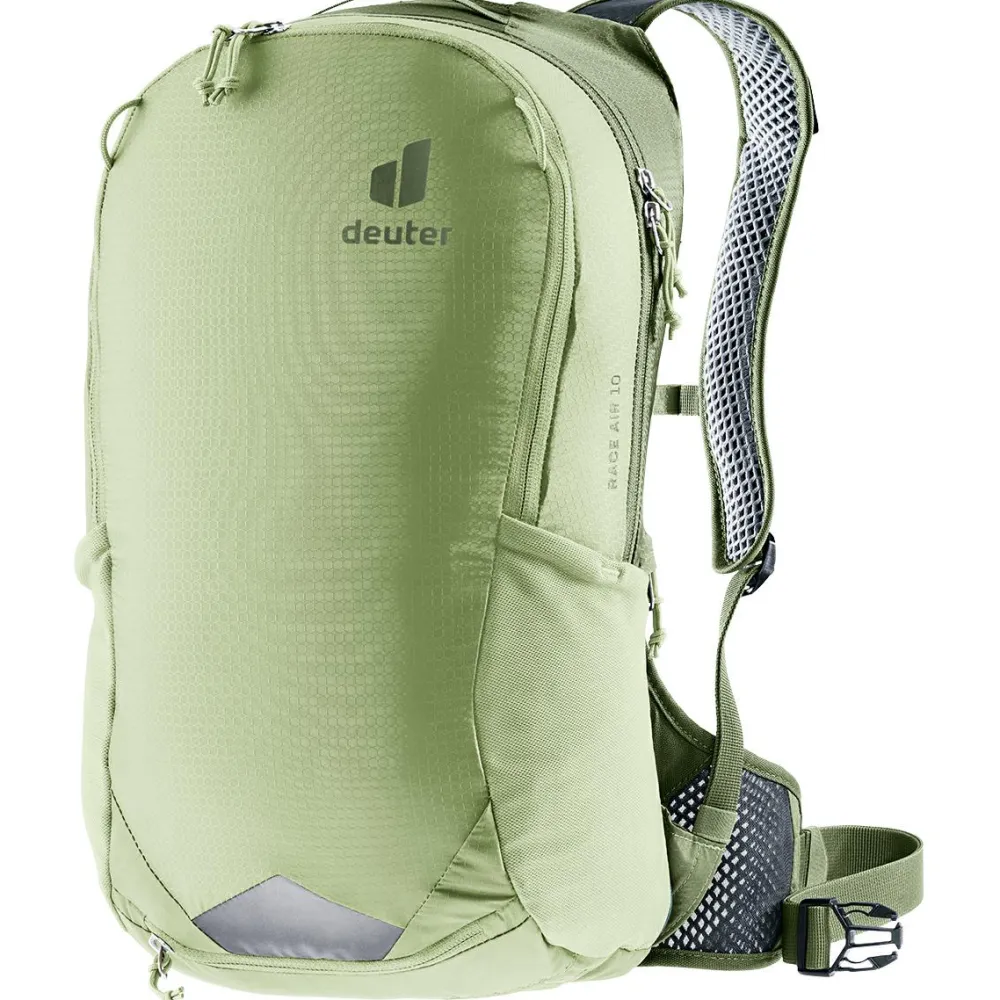 Die beiden elastischen Seitentaschen eignen sich ideal für den Transport von Trinkflaschen. Reflektierende Details sowie die praktische Brillenhalterung am Schulterträger machen den Race Air 10 Bike-Rucksack von deuter zur ersten Wahl für Deine nächste Ausfahrt in den Bergen.