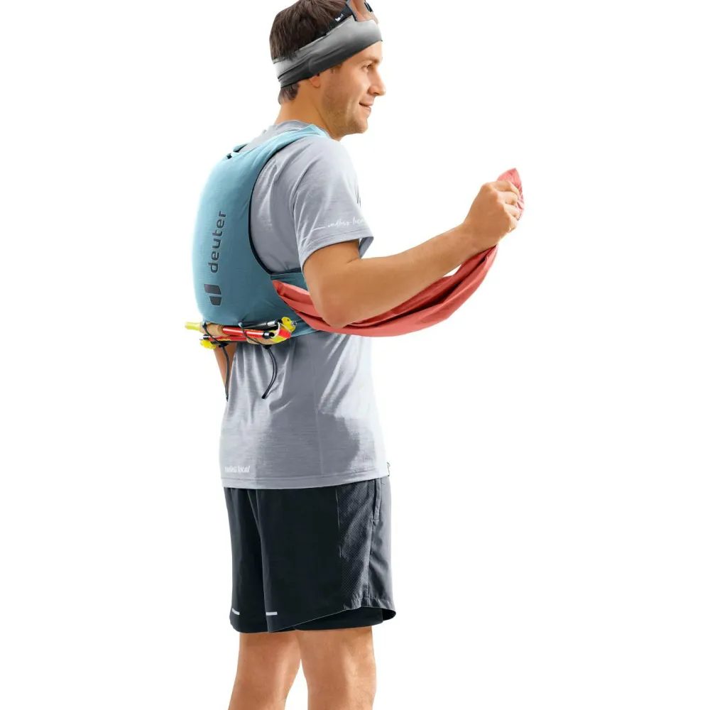 Der Traick 9 schneidet sowohl im Bereich Nachhaltigkeit, als auch im Bereich Leichtigkeit gut ab.deuter legt Wert auf eine umweltfreundliche, ressourcenschonende Herstellung. Somit erfüllt der Traick 9 die Anforderungen des Grünen Knopfs und des bluesign products und Du kannst ruhigen Gewissens mit ihm in die Berge ziehen.Damit Dich der Traick 9 nicht in den Bewegungen bei Deinem Berglauf einschränkt, hat er eine besonders körpernahe und elastische Passform. Auch der Brustgurt ist elastisch und individuell einstellbar, damit er Dich selbst bei hohen Belastungen nicht in der Atmung einschränkt.Für Deine Stöcke hast Du elastische und modulare Kordelzüge. Du kannst sie an die Stelle packen, an der Du sie am besten erreichen kannst und sie Dich am wenigstens beim Laufen stören.