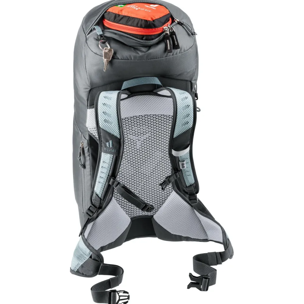 Du suchst einen leichten Rucksack für Tagesausflüge in der Natur? Der Women’s AC Lite 28 SL von deuter ist dabei ein hervorragender Begleiter. Dir passen die meisten Wanderrucksäcke nicht so gut, weil Du eher schmal gebaut bist? Mit der SL-Collection geht deuter auf die Bedürfnisse und Proportionen von Menschen mit kürzerem Rücken und schmaleren Schultern ein.Das geringe Gewicht wird über einen belüfteten Hüftgurt, den elastischen Federstahlrahmen und den höhenverstellbaren Brustgurt gut verteilt. Durch das deuter-Aircomfort Tragesystem mit dem Netzeinsatz am Rückenteil ist Dein Rücken gut belüftet und der Rucksack fühlt sich noch leichter an.Der Umwelt zuliebe hat deuter bei den Hauptmaterialien recycelte Kunststoffe verwendet. Der Women’s AC Lite 28 SL ist sowohl von „grüner Knopf“, als auch von „bluesign“ zertifiziert worden.