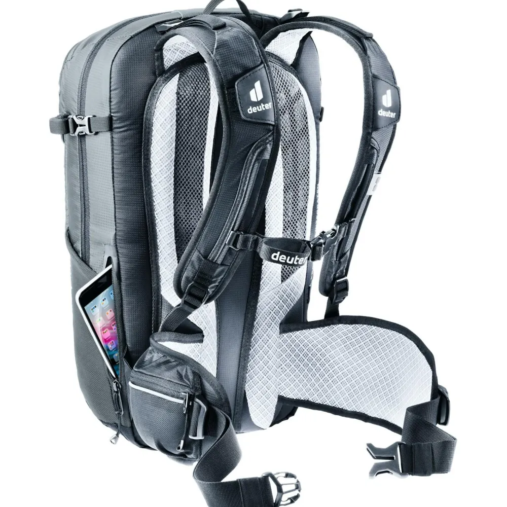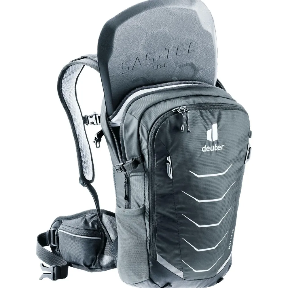 Der Women’s Flyt 12 Bikerucksack eignet sich bestens für den Einsatz auf dem Zweirad. Die hochwertigen Materialien schrecken auch vor unsanften Kontakten mit Felsen, Sträuchern oder dem Boden nicht zurück. Im Falle eines Sturzes schützt der integrierte Rückenprotektor die Sportlerin vor Verletzungen. Damit der Rücken auch bei schweißtreibenden Bedingungen angenehm belüftet wird, verfügt der Flyt über eine spezielles Rückensystem, das eine Luftzirkulation erlaubt. Die gepolsterten Schulter- und Hüftträger liegen angenehm weich am Körper und lassen sich perfekt auf die individuelle Präferenz einstellen. Auch ein Fullface-Helm kann schnell und einfach befestigt werden. Unter dem Rucksack befindet sich zusätzlich eine Halterung für Knie- und Ellenbogenschützer.