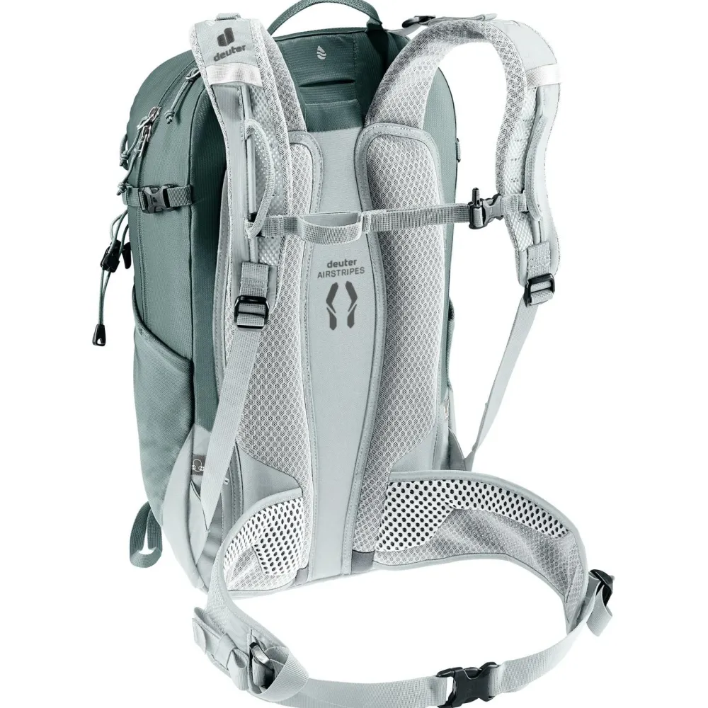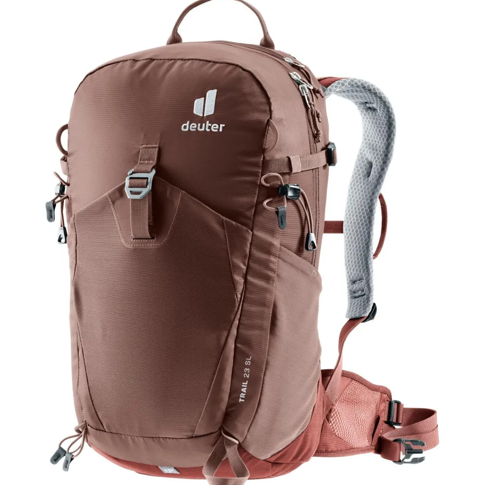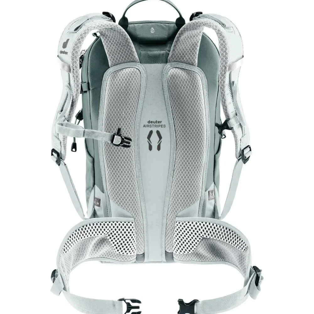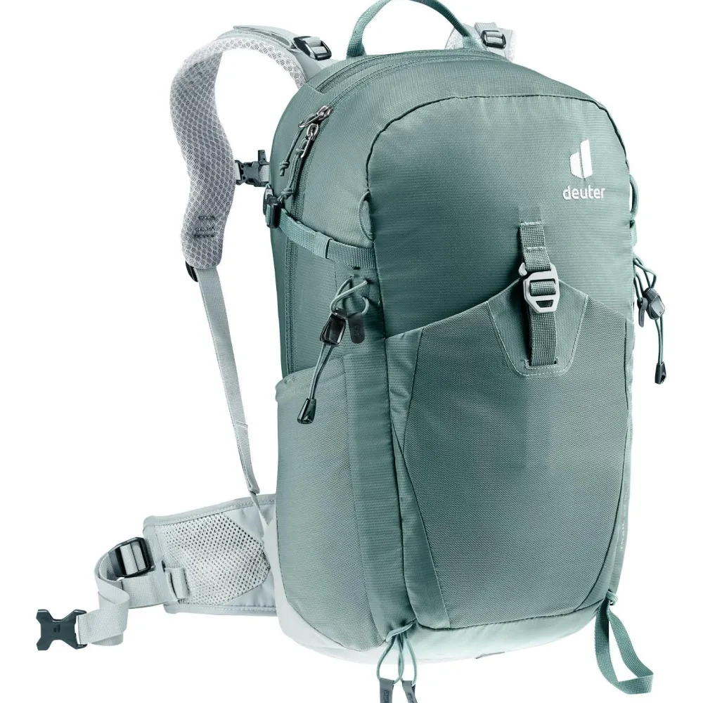 Durch das anatomisch geformte SL Tragesystem wird Deine nächste Bergtour mit dem Women’s Trail 23 SL von deuter zu einem vollen Erfolg. Der leichte Wanderrucksack wird mit recycelten Materialien hergestellt und eignet sich ideal für den Bergsport. Die ergonomischen Schulterträger sind beweglich gelagert und sorgen in Kombination mit dem robusten U-Rahmen im Rückenbereich beim Wandern für eine optimale Lastenverteilung. Dank einer flexiblen Halterung kannst Du Pickel oder Wanderstöcke bequem außen am Tourenrucksack anbringen.