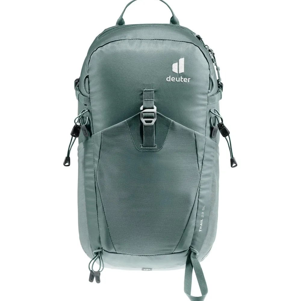 Die elastische Tasche auf der Rückseite eignet sich ideal für Bekleidung oder Ausrüstung, welche unterwegs rasch zur Hand sein muss. Das Wertsachenfach im Innenfach ist mit einem praktischen Clip für Deinen Schlüssel ausgestattet. Dank der abnehmbaren Regenhülle bist Du mit dem deuter Women’s Trail 23 SL Wanderrucksack bei jedem Wetter bequem unterwegs.